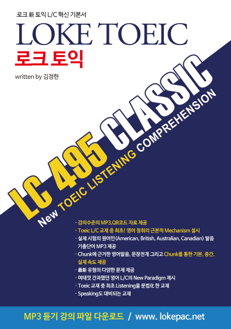 - LOKE TOEIC 495 L/C CLASSICÀº ±âÁ¸ÀÇ ÅäÀÍ Listening Comprehension ±âº»¼µéÀÇ ¹®Á¦Á¡µéÀ» Á÷½ÃÇÏ°í ¹Ý¼ºÇÏ¿© ÀÌ·ç¾îÁø Ã¥À¸·Î¼, ¼öÇè»ý¿¡°Ô ¿Ü±¹...