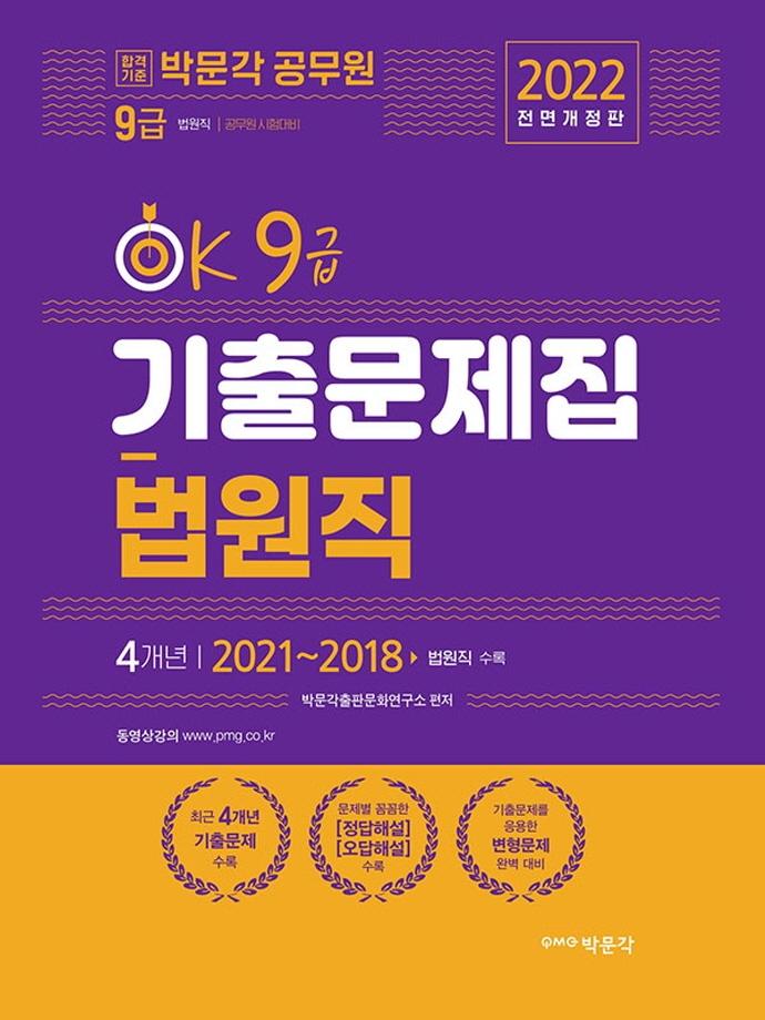 - ¡º2022 OK 9±Þ ¹ý¿øÁ÷ ±âÃâ¹®Á¦Áý¡» °³Á¤ÆÇ ±³Àç°¡ Ãâ°£µÇ¾ú½À´Ï´Ù. ¹ý¿øÁ÷ ½ÃÇèÀº ´Ù¸¥ Á÷·Ä°ú´Â ´Þ¸® ¼±Åðú¸ñ Á¦µµ¸¦ µû¸£Áö ¾Ê°í, °íÀ¯ Á÷¹«°ú¸ñÀ» ±×´ë·Î À¯ÁöÇϰí ÀÖ´Â ½ÃÇè...