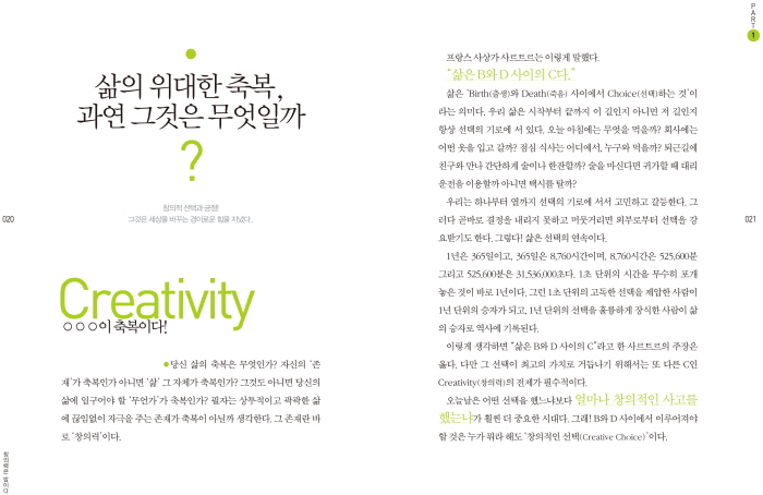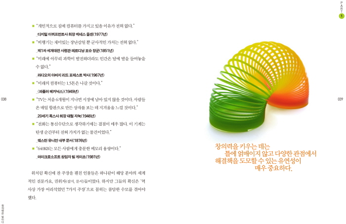 £ªÃ¢ÀÇ·ÂÀº ½Åºñ°¨À¸·Î µÑ·¯½Î¿© ÀÖÁö ¾Ê´Ù. âÀÇ·ÂÀ̶õ ¹º°¡ ºñ¹üÇÑ »ç¶÷µé¿¡°Ô ±¹ÇÑµÈ °ÍÀÌ ¾Æ´Ï¶ó ¿À´Ã³¯À» »ì¾Æ°¡´Â »ç¶÷µéÀÇ ¸ðµç À̽´ °¡¿îµ¥¿¡ ¼ ÀÖ´Ù. ÇÏ·çÇÏ·ç »ì¾Æ°¡¸é¼ ¾ò´Â ÀÏ»óÀûÀÎ ¾ÆÀ̵ð¾î¿Í ±× ½ÇõÀÇ ¼Ò»êÀÌ ¹Ù·Î âÀÇ·ÂÀÌ´Ù. ±×·¸´Ù¸é ±×·± âÀÇ·ÂÀ» ¾î¶»°Ô Á¤ÀÇÇÒ ¼ö ÀÖÀ»±î? ³Á¦¸¦ ÇØ°áÇÏ´Â ´É·ÂÀÌ Ã¢ÀÇ·ÂÀΰ¡? ±× ´©±¸µµ ¹Ìó »ý°¢ÇÏÁö ¸øÇÑ °ÍÀ» ±¸»óÇϰųª ¸¸µå´Â ´É·ÂÀÌ Ã¢ÀÇ·ÂÀΰ¡? ´«¿¡ ¶çÁö ¾Ê´Â °ÍÀ» ã°Å³ª ¹ß±¼ÇÏ´Â ´É·ÂÀÌ Ã¢ÀÇ·ÂÀΰ¡? âÀÇ·Â ¿¬±¸ÀÇ ´ë°¡ ±æÆ÷µå(Joy Paul Guilford)´Â ¡°Ã¢ÀÇ·ÂÀ̶õ ÁÖ¾îÁø »ç¹°À̳ª Çö»ó¿¡ ´ëÇØ »õ·Î¿î ½Ã°¢¿¡¼ ´Ù¾çÇÑ ¾ÆÀ̵ð¾î³ª »êÃâ¹°À» Ç¥ÃâÇÒ ¼ö ÀÖ´Â ´É·ÂÀÌ´Ù.¡± ÇÏ°í ¸»Çß´Ù. (p.36)