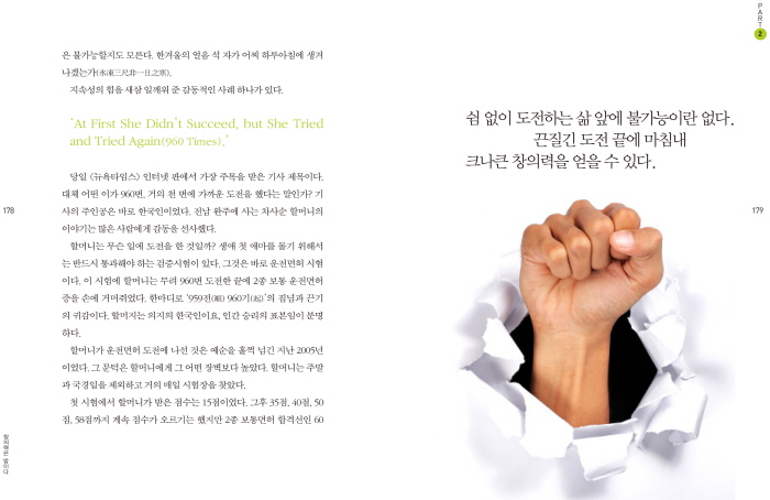 £ª±¤°í¶õ âÀÇ·ÂÀ¸·Î °¡´Â ¼ö·¹¹ÙÄû´Ù. ²Ë ¸·Èù »ç°í, Ʋ¿¡ ÇÔ¸ôµÈ »ç°í, ±×Àú ±×·± »ç°í¸¦ ³Ñ¾î ´Ã Âü½ÅÇÏ°í µ¶Ã¢ÀûÀÎ °ÍÀ» Ãß±¸ÇÏ´Â °ÍÀÌ ±¤°í´Ù. ¶ÇÇÑ ¼¼»ó¿¡ ±¤°í°¡ ¾ø¾ú´Ù¸é ÇöÀçÀÇ Ã¢ÀÇ·Â °è¹ßÀ̳ª ±×·± ¹ß»óÀ» À§ÇÑ ±â¹ýµéÀº ºûÀ» º¸Áö ¸øÇßÀ» ¼öµµ ÀÖ´Ù. ¸¸¾à ´ç½ÅÀÌ ¹ß»óÀÇ º®¿¡ ºÎµúÇô Çì¸Å°í ÀÖ´Ù¸é ¼¼»ó¿¡ ³ª¿Í ÀÖ´Â ¹«¼öÇÑ ±¤°í¸¦ °¡±ÞÀû ÀÚÁÖ ±×¸®°í ¸¹ÀÌ Á¢Ç϶ó. ±¤°í ¼ÓÀÇ ¿µ°¨Àº ´ç½Å¿¡°Ô °Å´ëÇÑ º®À» Çã¹° ¼ö ÀÖ´Â ¾öû³ ÇØ¸Ó¸¦ ¾È°Ü ÁÙ °ÍÀÌ´Ù. ±¤°í¸¦ ÅëÇØ ¼Ö·ç¼ÇÀ» ã¾Æ¶ó! (p.164)