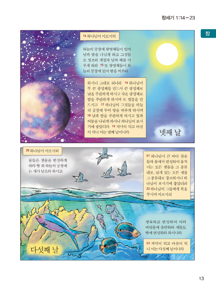 ÀÌ ¼º°æÀº ºñ´Ü ¾î¸°À̵鸸À» À§ÇÑ ¼º°æÀ¸·Î Á¦ÇÑÇϱ⿡´Â ³Ê¹«³ª ³î¶ó¿î ¼º°æÀÔ´Ï´Ù. Ź¿ùÇÑ ¼öõ ÀåÀÇ ¿øÈ¸¦ ¹ÙÅÁÀ¸·Î ±¸¼ºµÈ ÀÔüÀûÀÎ ¸¸È°¡ ÇÑ ÆíÀÇ ¿µÈ¸¦ º¸´Â °Íó·³ ÇÑ´«¿¡ ´Ù°¡¿Í »ì¾Æ ÀÖ´Â Çϳª´ÔÀÇ ¸»¾¸À» ¿ÜÄ¡°í Àֱ⠶§¹®ÀÔ´Ï´Ù. µû¶ó¼ ¼º°æÀ» Á» ´õ ½±°í Ä£±ÙÇÏ°Ô Á¢ÇÒ ¼ö ÀÖµµ·Ï ¼±º¸ÀÎ ±â¹ßÇϰí âÀÇÀûÀÎ ¾ç½ÄÀÇ ¿Ï¼ºµµ ³ôÀº ÀÌ ¼º°æÀ» ¾î¸°ÀÌ»Ó ¾Æ´Ï¶ó û¼Ò³â, ûÀå³â¿¡ À̸£±â±îÁö ´õ ¸¹Àº »ç¶÷µé¿¡°Ô ¼Ò°³ÇϰíÀÚ ÇÏ´Â ¸¶À½ÀÇ ¼Ò¿øÀ» °®°Ô µÇ¾ú½À´Ï´Ù.