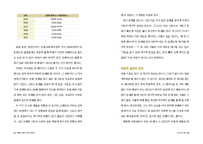 ºñ¹®ÇÐÀº ±× ¾î¶² »ç¼³, ±× ¾î¶² ±Ûº¸´Ùµµ Á¤µ·µÇ¾î ÀÖ°í ¼·Ð ∙ º»·Ð ∙ °á·ÐÀÌ ¸íÈ®È÷ ³ª´µ¾îÁ® ÀÖÀ¸¸ç, ±× ƲÀÌ ºÐ¸íÇÏ°Ô Â¥¿© ÀÖ´Ù. µû¶ó¼ Àüü Áö¹®À» Àбâ Àü¿¡ °á·ÐÀ» ¸ÕÀú ÀÐÀ½À¸·Î½á ÇØ´ç Áö¹®¿¡¼ ±Û¾´À̰¡ ÀǵµÇÏ´Â ¹Ù, Áï ±ÛÀÇ ÁÖÁ¦ ¹× ÀüüÀûÀÎ ¸Æ¶ôÀ» ÆÄ¾ÇÇÏ´Â °ÍÀÌ °¡´ÉÇØÁø´Ù. ¶ÇÇÑ ÀÌ·¯ÇÑ °ø½ÄÀÌ Àû¿ëµÇÁö ¾ÊÀº ¹®Á¦ÀÇ °æ¿ì¶óµµ ¸¶Áö¸· ¹®´ÜÀ» ÅëÇØ ¾ÕÀÇ ¹®´ÜÀÌ ¹«¾ùÀ» ¼³¸íÇϰí ÀÖ´ÂÁö ÃßÃøÇÒ ¼ö ÀÖ°Ô µÈ´Ù. À̰ÍÀÌ ºñ¹®ÇÐ ¹®Á¦¸¦ Ǫ´Â µ¥ ¹«½¼ µµ¿òÀÌ µÇ°Ú´À³Ä°í ¿©ÀüÈ÷ Àǹ®À» ǰ´Â Çлýµéµµ ÀÖÀ» ¼ö ÀÖ´Ù. ±×·¯³ª »ý°¢ÇØ º¸¶ó. Áö¹®ÀÌ ¹«¾ùÀ» ¼³¸íÇÒ °ÍÀΰ¡¸¦ ¾Ë°í ¹®Á¦¿¡ Á¢±ÙÇÏ´Â °Í°ú ±×·± °ÍÀ» ÀüÇô ´«Ä¡ äÁö ¸øÇÑ Ã¤ Á¢±ÙÇÏ´Â °Í »çÀÌ¿¡´Â ±²ÀåÈ÷ Å« Â÷À̰¡ Á¸ÀçÇÒ ¼ö¹Û¿¡ ¾øÁö ¾Ê°Ú´Â°¡! ¿©·¯ºÐÀº Àüü Áö¹®À» ÀÐ°í º»°ÝÀûÀ¸·Î ¹®Á¦¸¦ Àбâ Àü ¸¶Áö¸· ¹®´ÜÀ» ¸ÕÀú ÀÐÀ½À¸·Î½á ÁÖÁ¦¸¦ ¸íÈ®È÷ ÆÄ¾ÇÇÏ°Ô µÉ °ÍÀÌ´Ù. ¹Ý´ë·Î ¿©·¯ºÐÀº ¸¸¾à ù ¹®´ÜºÎÅÍ ÀÐ¾î ³»·Á °¥ °æ¿ì ºñ¹®Çп¡¼ ÀÚÁÖ »ç¿ëµÇ´Â ÀºÀ¯, Á÷À¯ µîÀÇ ºñÀ¯³ª ¹¦»ç µî¿¡ ±â¹ý¿¡ ¾ô¸Å¿© Áö¹®À» Àаí ÁÖÁ¦¸¦ ÆÄ¾ÇÇÏ´Â µ¥ ¾î·Á¿òÀ» °Þ°Ô µÉ °ÍÀÌ´Ù.