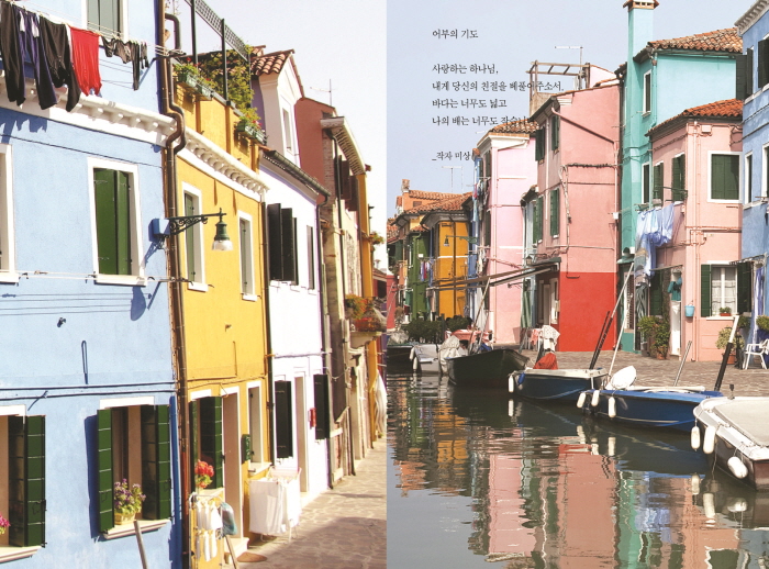 ¾ÆÀ̵éÀÌ »ó»ó·ÂÀ¸·Î Ä¥ÇÑ µí ³ë¶õ»ö º®°ú Ǫ¸¥»ö ÁöºØ, »¡°£ âƲÀ» ÇÑ ¿¹»Û ÁýµéÀÌ ¼¶ ¾È¿¡ °¡µæÇÏ´Ù. ¹Ù´Ù¿¡ ³ª°¡ ¹°°í±â¸¦ Àâ´Â °ÍÀÌ »ý¾÷ÀÎ ¾îºÎµéÀÌ ÀÏÀ» ¸¶Ä¡°í Áý¿¡ µ¹¾Æ¿Ã ¶§ ÀÚ½ÅÀÇ ÁýÀ» ã±â ½±µµ·Ï Áý¸¶´Ù °¢±â ´Ù¸¥ µ¶Æ¯ÇÑ »öÀ» Ä¥Çϱ⠽ÃÀÛÇß´Ù´Â À̰÷ÀÇ ÁýµéÀ» º¸±â À§ÇØ ÀÛÀº ¼¶Àº Ç×»ó ºÏÀû°Å¸°´Ù.