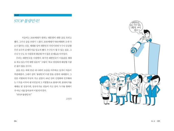 £ª¿ì¸®´Â ´ëÇѹα¹À» »ç¶ûÇÑ´Ù. ÇÏÁö¸¸ ´ëÇѹα¹ÀÌ À̸§°ªÀ» Á¦´ë·Î Çϰí ÀÖ´ÂÁö¿¡ ´ëÇÑ Áú¹®¿¡ ¡°±×·¸´Ù.¡±¶ó°í ´ç´çÇÏ°Ô ´ë´äÇÒ »ç¶÷Àº ¸¹Áö ¾ÊÀ» °ÍÀÌ´Ù. ±ÛÀ» ¾²´Â ³»³» ¸ø³ ³» ³ª¶óÀÇ ¸ð½ÀÀ» ¸¶ÁÖÇϰí ÀÖÀÚ´Ï ¸¶À½ÀÌ ÂøÀâÇØÁ³´Ù. ±×·¡¼ °¨È÷ ¡®ºÒ·®¹Î±¹¡¯À̶õ ¸»À» Àü¸é¿¡ ³»¼¼¿ü´Ù. (p.04)