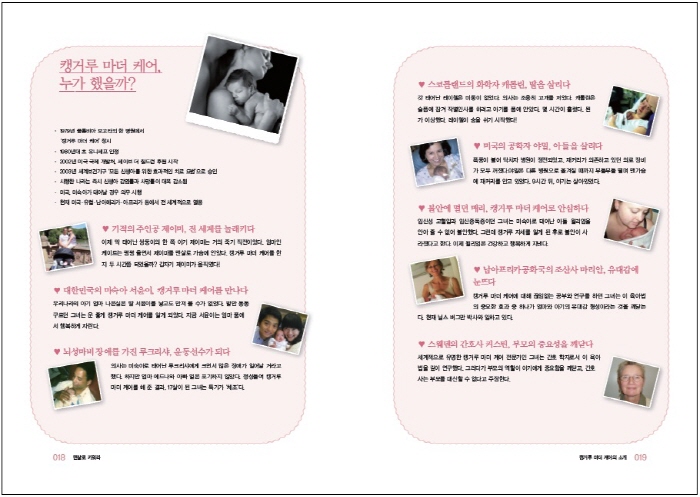 ¾ö¸¶ÀÇ °¡½¿¿¡¼ ¾Æ±â¸¦ Ű¿ì´Â Ä»°Å·ç ¸¶´õ Äɾî´Â À°¾Æ¹ýÀÇ »õ·Î¿î Àü±â¸¦ ¸¶·ÃÇÏ¸é¼ ¼¼°èÀûÀ¸·Î È®»êµÇ°í ÀÖ´Ù. ¼¼°èº¸°Ç±â±¸(WHO)¿¡¼µµ ±× ¿ì¼ö¼ºÀ» ÀÎÁ¤ÇÏ¿© Ä»°Å·ç ¸¶´õ Äɾî Á¦Á¤¾ÈÀÌ ¸¸µé¾îÁ³´Ù. ÀÌ Ã¥ÀÇ ÀúÀÚÀÎ Åä´Ï ·ç½º¿Í ³ªÀ̸® ·ç½º´Â ÀÌ ºÐ¾ßÀÇ ¼¼°èÀûÀÎ ±ÇÀ§ÀÚ·Î, Ä»°Å·ç ¸¶´õ ÄɾîÀÇ È®»êÀ» À§ÇØ Àü·ÂÀ» ´ÙÇϰí ÀÖ´Ù.