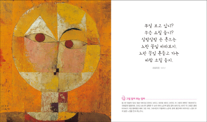 ¾ÆÀÌ¿Í ÇÔ²² Ã¥ÀåÀ» ³Ñ±â¸ç ±×¸² ¼Ó ÁÖÀΰøµéÀÌ ÀüÇØ ÁÖ´Â »ö±ò¿¡ ´ëÇÑ ´À³¦, ¿òÁ÷ÀÓ¿¡ ´ëÇÑ ´À³¦À» °¨»óÇϸ鼭 õõÈ÷ Àоî ÁÖ¼¼¿ä. ±× Àü¿¡ ±×¸²¸¶´Ù °çµéÀÎ °¨»ó Æ÷ÀÎÆ®¸¦ ¾ö¸¶°¡ ¹Ì¸® ÀÐ¾î µÎ¸é ¾ÆÀÌ¿Í ÇÔ²² °¨»óÇÒ ¶§ ÇÑ°á µµ¿òÀÌ µÇ°ÚÁö¿ä. ±×¸² ¼Ó¿¡ ¼û¾î ÀÖ´Â Àç¹ÌÀÖ´Â ¿ä¼ÒµéÀ» ¾ÆÀÌ¿Í ÇÔ²² ã¾Æº¸¸é¼­ »õ·Î¿î À̾߱⸦ ¸¸µé¾î º¸´Â °Ç ¾î¶³±î¿ä? ¾ö¸¶ÀÇ ´À³¦À» ¸»ÇØ ÁÖ°í, ¾ÆÀÌ´Â ¾î¶»°Ô ´À³¢´ÂÁöµµ ¸»ÇØ º¸°Ô Çϼ¼¿ä. ÀÌ·¯ÇÑ °æÇèÀ» ÅëÇØ ±×¸²°ú ´õ¿í Ä£¼÷ÇØÁø ¾ÆÀ̵éÀº °¨¼ºÀÌ ´õ¿í dzºÎÇØÁö°í, ÀÚ½ÅÀÇ »ý°¢À» ¶Ç·ÇÇÏ°Ô ¸»Çϸç Ç¥ÇöÇÒ ¼ö ÀÖ´Â Èûµµ »ý±ä´ä´Ï´Ù.