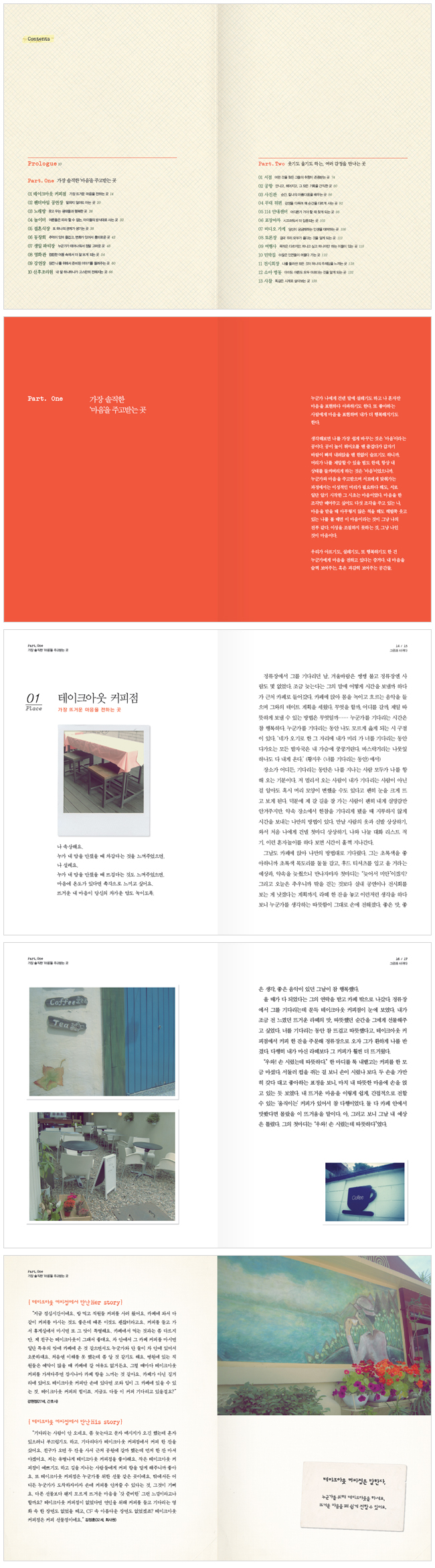 *¾î¶² °÷ÀÌ ÁÁÀ»±î, ¾îµð¸¦ °¥±î¡¦¡¦ ¼ÒÁßÇÑ »ç¶÷À̳ª Ưº°ÇÑ »ç¶÷°ú ¸¸³µÀ» ¶§ Ç×»ó ÇÏ´Â ¸»ÀÌ´Ù. ±×¸¸Å ¿ì¸®¿¡°Ô Àå¼Ò¶õ ²Ï Àǹ̰¡ ÀÖ´Ù. ±×·±µ¥ ¸·»ó ¾îµð¸¦ °¥±î ¶°¿Ã¸®°í °á±¹ °¡°Ô µÇ´Â °÷µéÀº ±×¸® Ưº°ÇÑ °ø°£µéÀÌ ¾Æ´Ï´Ù. »÷µåÀ§Ä¡¸¦ ¸¸µé¾î ±Ùó È£¼ö°ø¿ø¿¡ °¡°Å³ª, Â÷¸¦ ¸¶½Ã·¯ Ä«Æä¿¡ µé¾î°¡°Å³ª, ¸ñÀû ¾øÀÌ ±æÀ» °è¼Ó °È°Å³ª¡¦¡¦. ¼ÒÁßÇÑ »ç¶÷°ú ¸¸³ª´Â °÷Àº ºÐ¸í Ưº°ÇÑ Àå¼ÒÀÌ´Ù. Ä«Æä¿¡¼ ±× »ç¶÷°ú ³ª´« À̾߱â, ³îÀ̰ø¿ø¿¡¼ ±× »ç¶÷°ú ¸¸µç Ãß¾ïµéÀÌ »ç¶û½º·¯¿ö ±× Ưº°ÇÔÀ» »ý°¢ÇÏÁö ¸øÇÑ °ÍÀÏ »Ó. Ãß¾ï, À̾߱Ⱑ ÀÖ´Ù¸é Æò¹üÇÑ °÷µµ ÃÖ°íÀÇ Àå¼Ò°¡ µÈ´Ù. _283ÂÊ, ¡®Epilogue' Áß¿¡¼