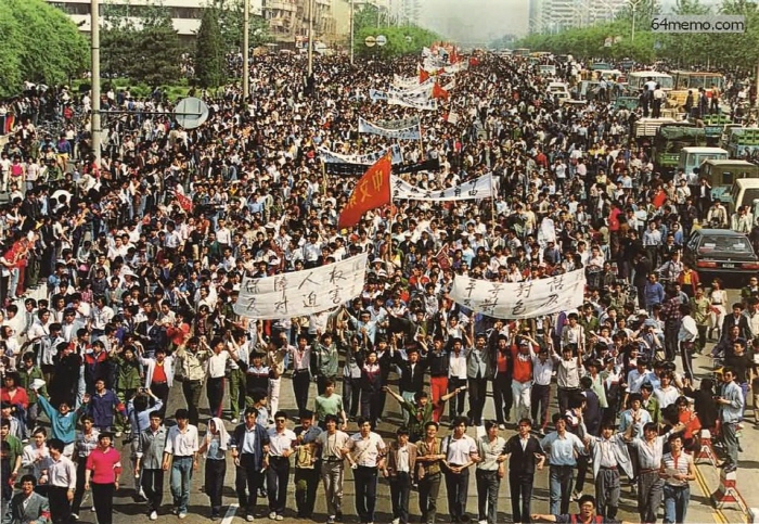 »çÁø: 1989³â 4¿ù 27ÀÏ º£ÀÌ¡ ¼ÒÀç 55°³ ´ëÇб³ Çлý ¾à 10¸¸ ¸íÀÌ 100¸¸ ½Ã¹ÎÀÇ ÁöÁö ¾Æ·¡ ÇàÁøÇÏ´ø ¸ð½À