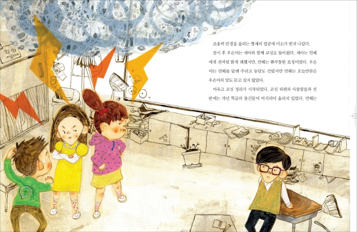±³½Ç¿¡ µé¾î¿ÀÀÚ ¹ÎÇý´Â ÇüÀç¿¡°Ô ¼÷Á¦¸¦ º¸¿© ´Þ¶ó°í Á¹¶ú´Ù. ÇüÀç´Â ÇѼûÀ» Ç« ½¬¸ç ¸»Çß´Ù.