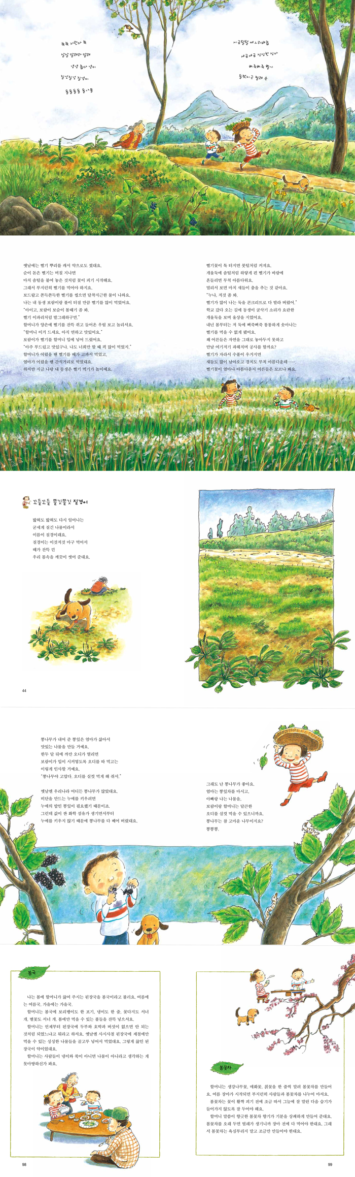¾óÀ½ÀÌ ³ìÀÚ¸¶ÀÚ ³ÃÀ̰¡ ¸Ç óÀ½ ¿À¸£°í¿ä. ±× µÚ¸¦ ÀÌ¾î ¾¦°ú ´Þ·¡ ¾¸¹Ù±Í¿Í °°Àº ¿Â°® ½ÏµéÀÌ »ó À§¿¡ ¿Ã¶ó¿ä. ÇҸӴϰ¡ ±×·¯½Ã´Âµ¥ ´Ü¿À Àü¿¡´Â ¸ðµç Ç®¿¡ µ¶¼ºÀÌ ¾ø¾î¼ ¸Ô¾îµµ µÈ´ë¿ä. ±×¸®°í ¹é°¡Áö Ç®À» ¶â¾î¼ ³ª¹°À» ÇØ ¸ÔÀ¸¸é ±× ÇØ ¿©¸§À» º° Å» ¾øÀÌ Áö³¾ ¼ö ÀÖ´ë¿ä. -º»¹® 14ÂÊ
