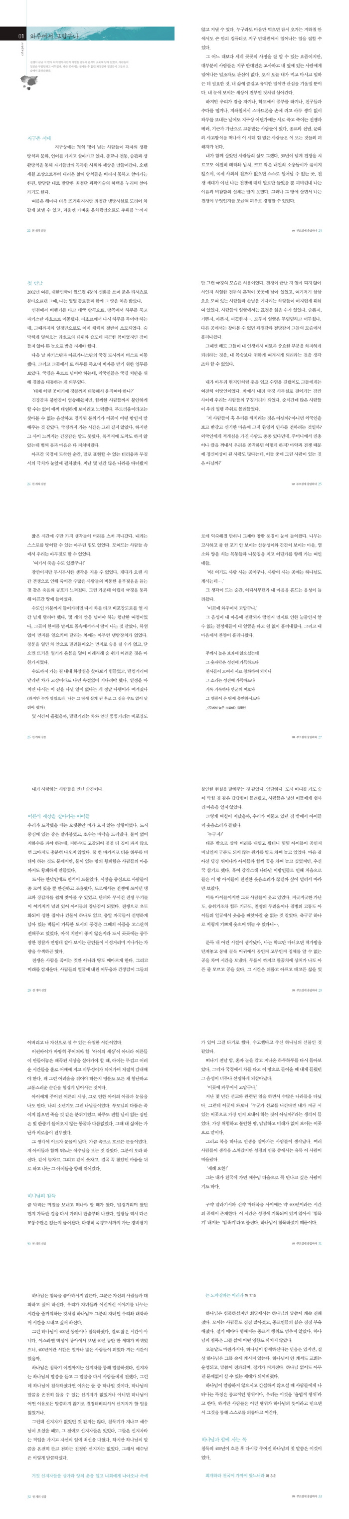 ¼±±³»ç´ÔÀÇ À̾߱⸦ µû¶ó°¡´Ù º¸¸é ±× ±æ ³¡¿¡¼ Çϳª´ÔÀÇ ´«¹°À» º¸°Ô µË´Ï´Ù. ½ÊÀÚ°¡¿¡¼ µ¹¾Æ°¡½Å ¿¹¼ö´ÔÀÇ »ç¶ûÀ» ¹ß°ßÇÏ°Ô µË´Ï´Ù. ¼º·ÉÀÇ ¿ª»çÇϽÉÀ» ¸ñµµÇÏ°Ô µË´Ï´Ù. ±âÀûÀÇ »ê¹°ÀÎ ÀÌ Ã¥ÀÇ ³¡¿¡¼ À§´ëÇÑ Çϳª´ÔÀÇ »ç¶ûÀ» ¸¸³ª±â¸¦ ±â´ëÇÕ´Ï´Ù. ±× »ç¶ûÀÌ °ÔÀ¸¸£°í ³ªÅÂÇÑ ¿µÈ¥µéÀ» Èçµé¾î ±ú¿ì±â¸¦ ¼Ò¸ÁÇÕ´Ï´Ù.