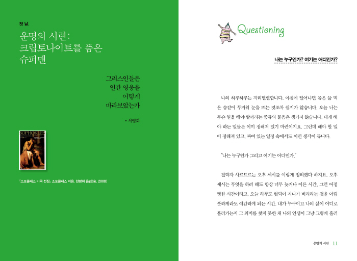 Å×¼¼¿ì½º ½ÅȰ¡ ¾ê±âÇÏ°í ½ÍÀº ±Ã±ØÀûÀÎ Á¡Àº ¹Ù·Î ÀÌ·¯ÇÑ ¡®ÀÚÀ¯¡¯¿¡ ÀÖÁö ¾Ê¾ÒÀ»±î »ý°¢ÇÕ´Ï´Ù. ¾Æ¹öÁöµµ, Çì¶óŬ·¹½ºµµ, ¾ÆÅ×³× ½Ã¹Îµéµµ ÀÚ±â Á¸Àç°¨À» µå·¯³»´Â ÇϳªÀÇ °úÁ¤ÀÌÀÚ ÀÚ±â Á¤Ã¼¼º Çü¼ºÀÇ Áß¿äÇÑ °è±âÀ̱ä ÇÏÁö¸¸ Àý´ëÀûÀ¸·Î ±×°Íµé¸¸À¸·Ð ¿Ï¼ºµÉ ¼ö ¾øÀ½À» Å×¼¼¿ì½º´Â ¸»ÇϰíÀÚ ÇÏÁö ¾Ê¾ÒÀ»±î¿ä. °ú°ÅÀÇ Å×¼¼¿ì½º´Â ÇöÀçÀÇ ¿ì¸®µé¿¡°Ô ¡®³ª´Â ´©±¸Àΰ¡¡¯¶ó´Â Àΰ£ÀÇ ±Ã±ØÀûÀÎ ¹®Á¦¿¡ ´ëÇÑ ´äÀ» ã´Â °úÁ¤¿¡ ÀÖ¾î¼ ¿©ÀüÇÑ Áú¹®°Å¸®¸¦ ´øÁ®ÁÖ°í ÀÖ´Â µíÇÕ´Ï´Ù. (113ÂÊ)