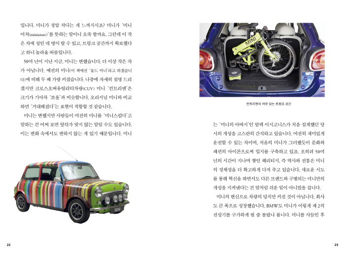 ÀÌ Ã¥ÀÌ MINIÀÇ Æò¹üÇÏÁö ¾ÊÀº 55³âÀÇ ¿ª»ç, ¶Ù¾î³ ±â´É, ±×¸®°í µ¶Æ¯ÇÑ µðÀÚÀΰú °¨¼ºÀ» ¸¹Àº »ç¶÷µé¿¡°Ô ¾Ë·ÁÁÙ ¼ö ÀÖ°Ô µÉ °ÍÀ̶ó´Â °ÍÀ» ¹Ï¾î ÀǽÉÄ¡ ¾Ê½À´Ï´Ù. ¶ÇÇÑ Áö±Ý ÀÌ ¼ø°£¿¡µµ MINI ¿îÀü¼®¿¡ ¾É¾Æ¼ MINIÀÇ ¸Å·ÂÀ» ¸¸³£Çϰí ÀÖ´Â MINI ¸¶´Ï¾Æµé¿¡°Ô ¡®Àںνɡ¯À» ÁÙ ¼ö Àֱ⸦ ¹Ù¶ø´Ï´Ù. ³ª¾Æ°¡ ¼¼°è ÃÖ°íÀÇ ÇÁ¸®¹Ì¾ö ¼ÒÇüÂ÷ ºê·£µå·Î¼ÀÇ ÀÔÁö¸¦ ´Ù½Ã±Ý È®ÀÎÇØÁÙ ¼ö ÀÖ°Ô µÇ±â¸¦ ¹Ù¶ø´Ï´Ù.