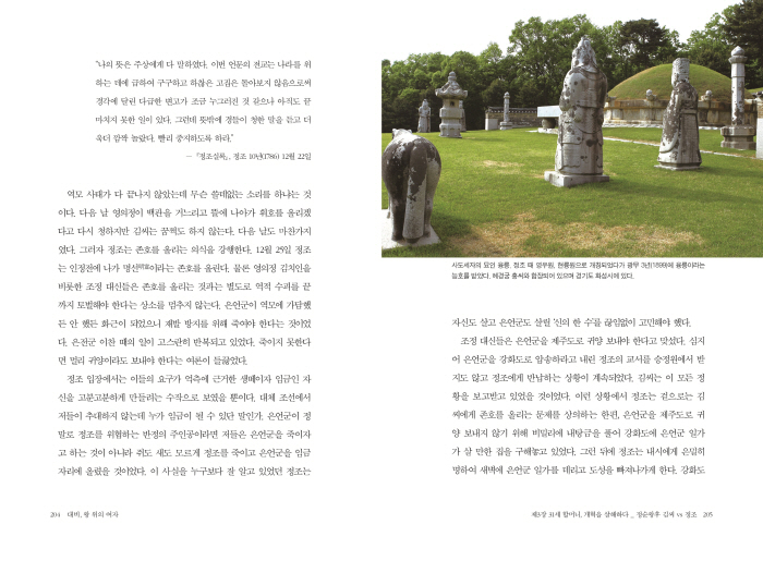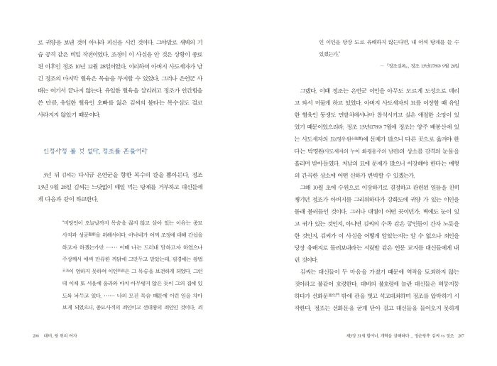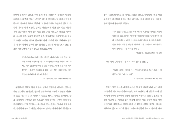 »ó¹æ°ËÀ̶õ ÀÓ±ÝÀÇ Ä®À» ¸»ÇÑ´Ù. ÀÓ±ÝÀÌ »ó¹æ°ËÀ» ³»¸°´Ù´Â °ÍÀº Àü±ÇÀ» ¸Ã±ä´Ù´Â ¶æÀ̾ú´Ù. Á¤Á¶ÀÇ ¸»Àº ´©±¸¸¦ ¸··ÐÇϰí Àº¾ð±º ÀÌÀο¡°Ô ¼ÕÀ» ´ë´Â ÀÚ´Â ±× ÀÚ¸®¿¡¼ ¸ñ¼ûÀ» »¯¾îµµ ÁÁ´Ù´Â ¶æÀ̾ú´Ù. ¿ÕÁ¶ ±¹°¡¿¡¼ ±¹¹ýÀ̶õ ÀÏÂ÷ÀûÀ¸·Î´Â ¿ÕÀÇ ¸»ÀÌ´Ù. ±¹¹ýÀÎ ¿ÕÀÇ ¸»À» ¹«¼¿öÇϱâ´ÂÄ¿³ç ¹«½ÃÇÏ´Â ´ë½ÅµéÀ» º¸´Â Á¤Á¶´Â ¾ó¸¶³ª Âü´ãÇßÀ»±î. Âü´ãÇÔ°ú ºÐ³ë°¡ µÚ¼¯ÀÎ ¸¶À½À¸·Î Á¤Á¶´Â °¡¸¶¿¡ ¿Ã¶ó µ¿»ýÀ» µÚÂÑ¾Æ °Èµµ±îÁö¶óµµ °¥ ±â¼¼·Î µ·È¹® ¹ÛÀ¸·Î ³»´Þ¾Ò´Ù. °üÀ» ¹þ°í ºÎº¹ÇÏ´ø ´ë½ÅµéÀÌ ¿ï¸é¼ ÂÑ¾Æ ³ª¿À´õ´Ï ±æÀ» °¡·Î¸·¾Ò´Ù. ±×µéÀ» ÇâÇØ Á¤Á¶°¡ ¿ïºÎ¢µí ¸»ÇÑ´Ù.