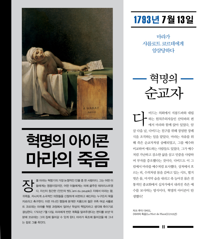 Àå Æú ¸¶¶ó´Â Çõ¸í±âÀÇ °¡Àå ³íÀïÀûÀÎ Àι° Áß ÇÑ »ç¶÷ÀÌ´Ù. ±×´Â ¾î¶² À̵鿡°Ô´Â ¿µ¿õÀ̾úÁö¸¸, ¾î¶² À̵鿡°Ô´Â ÇÇ¿¡ ±¾ÁÖ¸° Å×·¯¸®½ºÆ®¿´´Ù. ÀÚ½ÅÀÌ Ã¢°£ÇÑ <ÀιÎÀÇ ¹þ(L¡¯ami du peuple)> Áö¿¡¼ ¸¶¶ó´Â ¿Õ, ±ÍÁ·µé, Áö³ªÄ¡°Ô ¼Ò±ØÀûÀÎ ÀÇ¿øµéÀ» ½Å¶öÇÏ°Ô ºñÆÇÇÏ°í ¹è½ÅÀÚ´Â ´©±¸µçÁö ¸ñÀ» ÀÚ¸£¶ó°í Ã˱¸ÇÑ´Ù. ÀÌ·± Áö³ªÄ£ Çൿ¿¡ ºÐ°³ÇÑ Áö·ÕµåÆÄ ÀþÀº ±ÍÁ· ¿©¼º »þ¸¦·ÎÆ® ÄÚ¸£µ¥´Â ¸¶¶ó¸¦ Çõ¸í °úÁ¤¿¡¼ ÀÏ¾î³ ÇлìÀÇ Ã¥ÀÓÀÚ¶ó°í »ý°¢ÇØ Á×À̱â·Î °á½ÉÇÑ´Ù. 1 793³â 7¿ù 13ÀÏ, ¸¶¶ó¿¡°Ô ¹Ý¶õ °èȹÀ» ¾Ë·ÁÁÖ°Ú´Ù´Â ÆíÁö¸¦ º¸³½ ´öºÐ¿¡ ÄÚ¸£µ¥´Â ±×ÀÇ Áý¿¡ µé¾î°¥ ¼ö ÀÖ°Ô µÈ´Ù. ¸¶¶ó°¡ ¿åÁ¶¿¡ µé¾î°¬À» ¶§ ±×³à´Â Ä®·Î ±×¸¦ Á×ÀδÙ.