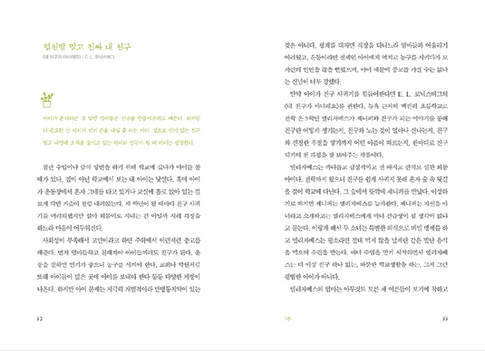 ¾î¸°ÀÌ Ã¥À» ÀÐÀ¸¸é ÀÌ·± ¾ÆÀ̵éÀ» Á¶±ÝÀº ÀÌÇØÇÒ ¼ö ÀÖ´Ù. ¾î¸°ÀÌ Ã¥À» ÀÐÀ¸¸ç ³ª´Â Àذí ÀÖ´ø ±× ½ÃÀýÀÇ °í¹Î°ú ºÐ³ë¿Í ÁÂÀý°ú Èñ¸ÁÀ» µÇµ¹¾ÆºÃ°í, ¾î¸°ÀÌ Ã¥ ¼Ó¿¡¼ ´Ù¾çÇÑ ¾ÆÀ̵éÀ» ¸¸³ª ±×µéÀÇ À̾߱⸦ µé¾ú´Ù. ±×¸®°í ±× °úÁ¤À» ÅëÇØ Çб³ °øºÎ´Â Çϱ⠽ÈÁö¸¸ ÇÏ°í ½ÍÀº °Ç ¸¹Àº ³» ¾ÆÀ̸¦, ¿©µå¸§Åõ¼ºÀÌ ¼Ò³à¿´´ø ³ª¸¦ µÇµ¹¾ÆºÃ´Ù. ´õ ÀÌ»ó ¿¾³¯Ã³·³ ÀçÀ߰Ÿ®¸ç ÀÚ½ÅÀÇ À̾߱⸦ µé·ÁÁÖÁö ¾Ê´Â ½Ê´ëÀÇ ¾ÆÀ̵éÀ» ÀÌÇØÇÏ°í ´ëÈÇÏ°í ½ÍÀº ºÎ¸ð¿¡°Õ ±×·¡¼ ¾î¸°ÀÌ ¹®ÇÐÀÌ ÇÊ¿äÇÏ´Ù.