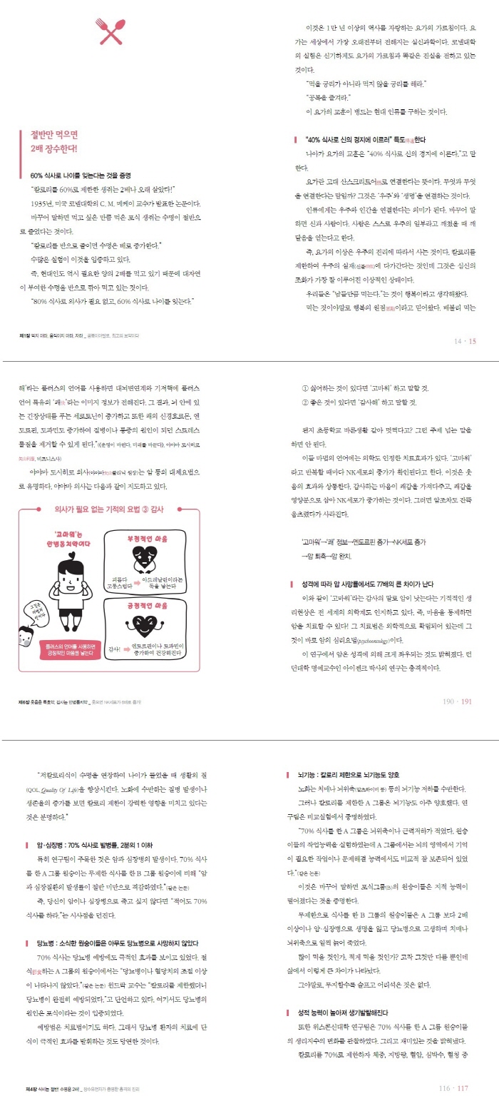 ¶ÇÇÑ ÀÌ Ã¥¿¡¼´Â ¼Ò½Ä, ¿ôÀ½, °¨»ç, ±ä È£Èí, ±Ù·Â´Ü·Ã µî º´¿ø¿¡ °¡Áö ¾Ê°íµµ ¸ðµç Áúº´À» Ä¡À¯ÇÏ´Â ´Ù¼¸ °¡Áö ¹æ¹ýÀ» ¼Ò°³ÇÑ´Ù. ÀÌ·¸°Ô ÇÏ¸é ¸é¿ª·Â, ÀÚ±âÄ¡À¯·Â, ¹èµ¶·Â µîÀÌ Áõ°µÇ¾î ¸ðµç Áúº´ÀÌ ³ªÀ» ¼ö ÀÖ´Ù. µ·µµ µéÁö ¾Ê°í ´©±¸µçÁö ÇÒ ¼ö ÀÖ´Â µ¥´Ù°¡ ºÎÀÛ¿ëµµ ÀüÇô ¾øÀ¸¹Ç·Î ÇÑ ¹øÂë µµÀüÇØ¼ °Ç°Çϰí ÇູÇÑ »îÀ» ±â´ëÇØ º¼ ¸¸ÇÏ´Ù.