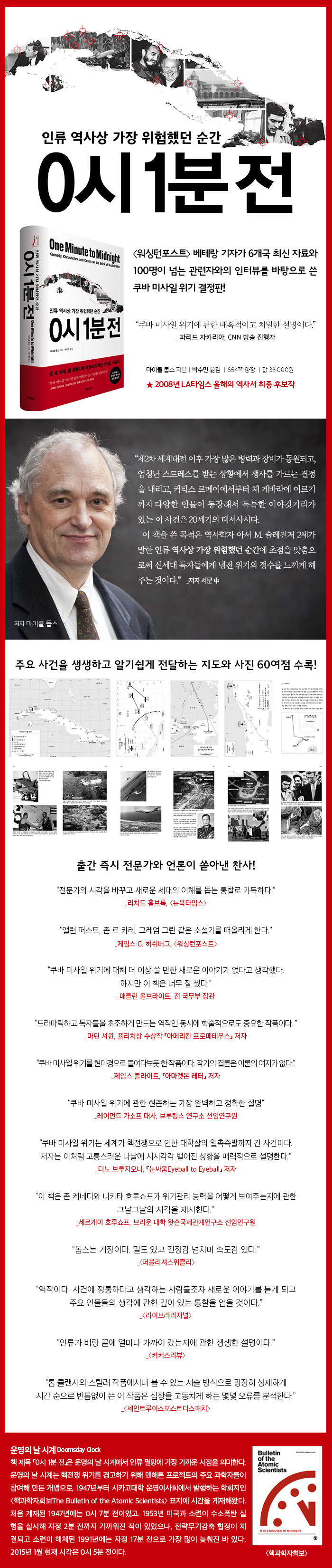 ¡°Àηù ¿ª»ç»ó °¡Àå À§ÇèÇß´ø ¼ø°£.¡± ¿ª»çÇÐÀÚ ¾Æ¼ M. ½¶·¹ÁøÀú´Â Äí¹Ù ¹Ì»çÀÏ À§±â¸¦ ÀÌ·¸°Ô Á¤ÀÇÇß´Ù. 1962³â 10¿ù Äɳ׵ð ´ëÅë·É ÀçÀӱ⿡ ¹ß¹ßÇÑ Äí¹Ù ¹Ì»çÀÏ À§±â´Â ÇÙÀüÀï ÀÏÃËÁï¹ß±îÁö °¬´Ù´Â »ç°ÇÀÇ »ó¡¼º ¿Ü¿¡µµ µå¶ó¸¶Æ½ÇÑ »çÅ Àü°³¿Í ÇØ¼Ò, Äɳ׵𰡠³²±ä 43½Ã°£Â¥¸® ¹é¾Ç°ü ºñ¹Ð ³ìÃë·Ï µîÀ¸·Î ¼ö¸¹Àº Ã¥°ú ³í¹®, TV ´ÙÅ¥¸àÅ͸®ÀÇ ´Ü°ñ ¼ÒÀç°¡ µÇ¾úÁö¸¸, ´ëºÎºÐÀº ¹Ì±¹ Áß½ÉÀÇ ¼³¸í¿¡ ±×ÃÆ´Ù. ¡´¿ö½ÌÅÏÆ÷½ºÆ®¡µ ¼Ò·Ã ƯÆÄ¿ø Ãâ½ÅÀÎ ¸¶ÀÌŬ µ½½º´Â ¹Ì±¹¡¤¼Ò·Ã¡¤Äí¹Ù¸¦ ºñ·ÔÇÑ 6°³±¹ ÀڷḦ ±³Â÷ °ËÁõÇϰí, 100¸íÀÌ ³Ñ´Â °ü·ÃÀÚ¿Í ÀÎÅͺ並 ÅëÇØ ½Å¼±ÇÑ ½Ã°¢À» Á¦½ÃÇß´Ù. Á¸ ¸£ Ä«·¹, Åè Ŭ·£½Ã¸¦ ¶°¿Ã¸®°Ô ÇÏ´Â Ä¡¹ÐÇÑ ¼³¸í°ú Àι° ¹¦»ç·Î ÈíÀη ÀÖ°Ô Ç®¾î³Â´Ù°í Æò°¡¹ÞÀº ÀÌ ÀÛǰÀº Äí¹Ù ¹Ì»çÀÏ À§±â¸¦ ÁÖÁ¦·Î ÇÑ Ã¥ °¡¿îµ¥ ´ëÁßÀûÀ¸·Îµµ °¡Àå Å©°Ô ¼º°øÇßÀ» »Ó¸¸ ¾Æ´Ï¶ó, ¡´LAŸÀÓ½º¡µ ¿ÃÇØÀÇ ¿ª»ç¼ ÃÖÁ¾ Èĺ¸ÀÛ¿¡ ¼±Á¤µÈ ¿ªÀÛÀÌ´Ù.