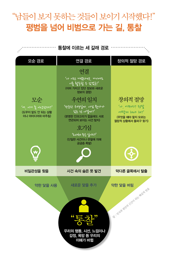 ÅëÂûÀ» ¾ò´Â ¹æ¹ý¿¡ ´ëÇØ ¸»ÇÏÀÚ¸é, ¼¼ °¥·¡ °æ·Î ¸ðÇüÀÌ ¿ì¸®°¡ µû¶ó°¡´Â ´Ù¸¥ °æ·ÎµéÀ» ¼³¸íÇØÁØ´Ù. ºñÀϰü¼º°ú ÀÌ·ÊÀûÀÎ °ÍÀ» ¾Ë¾ÆÃ¤°í, ã°í, Àû¿ëÇϱâ À§Çؼ ¿ì¸®´Â ¸ð¼ø °æ·Î¸¦ »ç¿ëÇÑ´Ù. »õ·Î¿î ¾ÆÀ̵ð¾î¿¡ ´ëÇÑ ¿ì¸®ÀÇ ³ëÃâÀ» Áõ°¡½Ã۱â À§Çؼ ¿ì¸®´Â ¿¬°á °æ·Î¸¦ »ç¿ëÇÑ´Ù. ¿È¦´Þ½Ï ¸ø ÇÏ´Â »óȲ¿¡ óÇßÀ» ¶§ ¿ì¸®´Â ºñÆÇÀû »ç°í ±â¹ýµéÀ» »ç¿ëÇØ¼ °áÇÔ ÀÖ´Â °¡Á¤°ú ¹ÏÀ½À» ã°í ±³Á¤ÇÑ´Ù. ¢º 14Àå ¿ì¸® ÀÚ½ÅÀ» µ½±â | pp.298~289