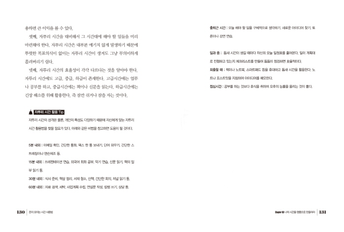 Ä«Áö³ë¿¡¼ ÀèÆÌÀÌ ÅÍÁö°Å³ª ·Î¶Ç¿¡ ´ç÷µÇÁö ¾Ê´Â ÇÑ, ÀϹÝÀûÀÎ »ç¶÷µéÀÌ ºÎ¸¦ ÃàÀûÇϱâ¶õ °áÄÚ ½¬¿î ÀÏÀÌ ¾Æ´Ï´Ù. ÀÚ½ÅÀÇ ´É·ÂÀ» ½×°í, µ·À» ¸ðÀ¸±â À§Çؼ± ¹«¾ùº¸´Ùµµ ÀÚ½ÅÀÇ ½Ã°£À» Àß °ü¸®ÇØ¾ß ÇÑ´Ù. ÀÌ Ã¥Àº ÀλýÀÇ ¼º°ø°ú ½ÇÆÐ¸¦ °áÁ¤ÇÏ´Â °¡Àå Å« ¿äÀÎÀÎ ½Ã°£ °ü¸®ÀÇ ºñ¹ýÀ» ¾Ë·ÁÁÖ°í, Àڱ⿡°Ô ÁÖ¾îÁø ¼ÒÁßÇÑ ½Ã°£À» Çö¸íÇÏ°í ¶È¶ÈÇÏ°Ô ´Ù·ç´Â ¹æ¹ýÀ» Á¦½ÃÇÑ´Ù.
