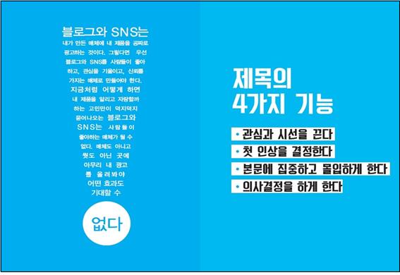 Á¦¸ñÀº °í°´À¸·Î ÇÏ¿©±Ý º»¹®¿¡ ÁýÁßÇÏ°í ¸ôÀÔÇÏ°Ô ¸¸µç´Ù. °í°´ÀÌ ¼±ÅÃÀ» Çß´Ù´Â °ÍÀº Á¦¸ñÀ» º¸°í °·ÂÇÑ °ü½É°ú È£±â½É, ±×¸®°í ½º½º·ÎÀÇ Çʿ信 µû¸¥ Àý¹ÚÇÔÀ» ´À²¼´Ù´Â °ÍÀÌ´Ù. ¶ÇÇÑ ³ª¿¡°Ô È£°¨À» °¡Áö°Ô µÇ¾ú´Ù´Â °Í, ±×¸®°í ÃÖ¼ÒÇÑ ³ªÀÇ Ã¹ ÀλóÀÌ ³ª»ÚÁö ¾Ê¾Ò´Ù´Â °ÍÀ» ÀǹÌÇÑ´Ù. È£°¨°ú °ü½ÉÀ» °¡Áö°í º»¹®À¸·Î µé¾î¿Â °í°´Àº ÀÚ¿¬½º·´°Ô º»¹®ÀÇ ³»¿ë¿¡ ÁýÁßÇÏ°í ¸ôÀÔÇÑ´Ù. µû¶ó¼ Á¦¸ñÀº ù ¸¸³²ÀÇ ¼ø°£ºÎÅÍ °ü½É°ú È£±â½ÉÀ» ºÒ·¯ÀÏÀ¸Å°°í °í°´ÀÌ ÇÊ¿ä·Î ÇÏ°í ¹Ù¶ó´Â °ÍÀ» ȯ±â½ÃÄѼ °ü½É°ú ±â´ë¸¦ °¡Áö°í º»¹®À¸·Î µé¾î¿Ã ¼ö ÀÖ°Ô ÇØ¾ß ÇÑ´Ù.