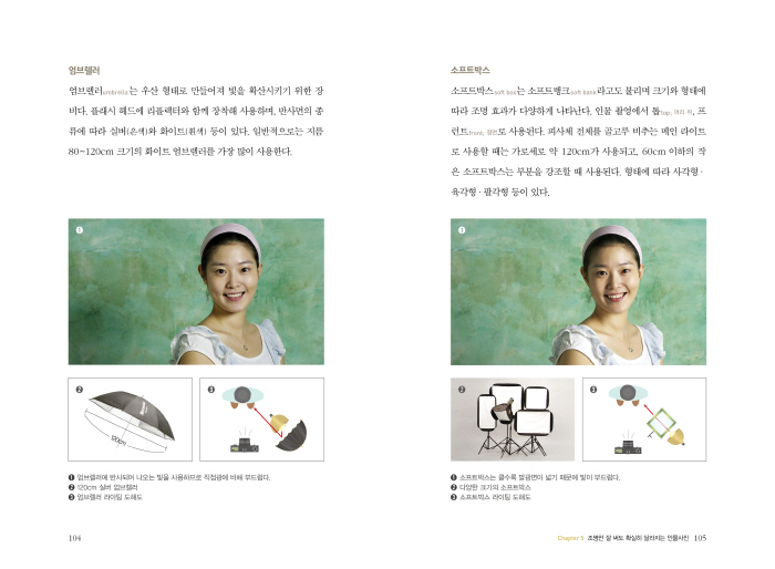 »ýµ¿°¨ ÀÖ´Â ´«ºûÀ» ¸¸µé¾îÁÖ´Â °ÍÀº Àι°»çÁøÀÇ Áß¿äÇÑ ¿ä¼ÒÀÌ´Ù. ´«¿¡ ÇÏÀ̶óÀÌÆ®°¡ ´ã±âµµ·Ï ¹Ý»çÆÇÀ̳ª Ç÷¡½Ã µî º°µµÀÇ Á¶¸í±â±â¸¦ ÀÌ¿ëÇØ µ¿°ø¿¡ Èò Á¡À» ¸¸µé¾î ´«ºû¿¡ »ý±â°¡ µ¹°Ô Çϴ ijġ ¶óÀÌÆ®°¡ ÀÖ´Ù. ´«µ¿ÀÚ¿¡ »ý±ä Èò Á¡ÀÇ Á¶¸í ±¤¿øÀº ½Ã¼±À» »ç·ÎÀâ´Â È¿°ú¸¦ °¡Á³´Ù°í ÇØ¼ ijġ ¶óÀÌÆ®(catch light)¶ó´Â À̸§ÀÌ ºÙ¿©Á³´Ù. ijġ ¶óÀÌÆ®´Â ´«µ¿ÀÚ¿¡ »ý±â¸¦ ºÒ¾î³Ö¾îÁֱ⠶§¹®¿¡ ijġ ¶óÀÌÆ®°¡ ¾øÀ» ¶§¿Í ºñ±³Çغ¸¸é ´«µ¿ÀÚ¿¡ Èò Á¡ÀÌ »ý°Ü ÈξÀ »ý±â¹ß¶öÇÑ ´À³¦À» ¹Þ°Ô µÈ´Ù. ¶ÇÇÑ ´«µ¿ÀÚ¸¦ ÀÚ¼¼È÷ µé¿©´Ùº¸¸é »ç¿ëÇÑ Á¶¸íÀÇ Á¾·ù¿Í °³¼ö µîÀ» ¾Ë ¼ö ÀÖ´Ù. Á¶¸í¹æ¹ý¿¡ µû¶ó ijġ ¶óÀÌÆ®°¡ »ý±âÁö ¾ÊÀ» °æ¿ì ÈÄ¹Ý ÀÛ¾÷¿¡¼ ±×·¡ÇÈÀ¸·Î ±×·Á ³Ö±âµµ ÇÑ´Ù. ijġ ¶óÀÌÆ®´Â ¿©·¯ °³ ÀÖ´Â °Íº¸´Ù´Â ÇÑ °³¸¸ ÀÖ´Â °ÍÀÌ ÈξÀ ±ò²ûÇÏ°í º¸±â ÁÁ´Ù. ¿þµù»çÁøÀ̳ª ÆÐ¼ÇȺ¸ ÃÔ¿µ µî¿¡¼ ´«µ¿ÀÚ¿¡ °íȤÀûÀÎ ºÐÀ§±â¸¦ ¸¸µé±â À§ÇØ Çü±¤µî ÆÐÅÏÀ» Ȱ¿ëÇϱ⵵ ÇÑ´Ù. ¾ð¶æ º¸¸é ¾Ë ¼ö ¾øÀ¸³ª ÀÚ¼¼È÷ µé¿©´Ùº¸¸é ijġ ¶óÀÌÆ®ÀÇ ¸ð¾ç¿¡ µû¶ó ºÐÀ§±â°¡ ´Þ¶óÁö´Â °ÍÀ» ¾Ë ¼ö ÀÖ´Ù. _ p.129-130