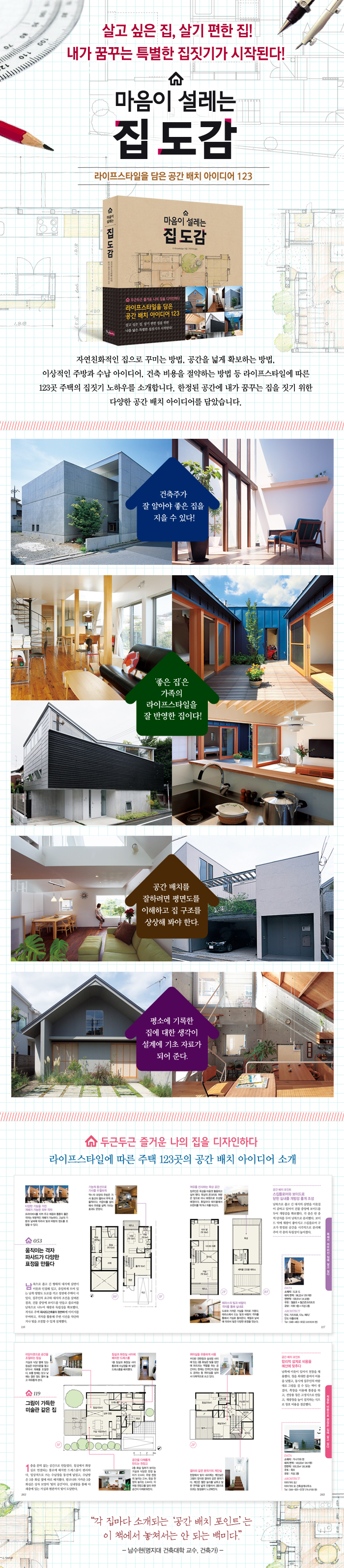 ¡¶¸¶À½ÀÌ ¼³·¹´Â Áý µµ°¨¡·Àº ´Üµ¶ÁÖÅÃÀ» ²Þ²ã¾ß ÇÒ ÀÌÀ¯¸¦ À庰·Î ³ª´©¾î¼ ¼Ò°³Çϸé¼, °¢ ÁÖÅÃÀÇ ÀåÁ¡°ú Àüü ±¸µµ¸¦ ÀûÀýÇÏ°Ô º¸¿© ÁÖ°í, ¾ÆÆÄÆ®¸¦ ³Ñ¾î¼± ÁÖ°Å °ø°£À» ²Þ²Ù´Â À̵鿡°Ô´Â »õ·Î¿î ÁÖ°ÅÀÇ °¡´É¼ºÀ» Á¦½ÃÇÑ´Ù. ÁÖÅÃÀ» Áþ°íÀÚ ÇÏ´Â °ÇÃàÁֵ鿡°Ô´Â °ÇÃà°¡¿Í ´ëÈÇÒ ¼ö ÀÖ´Â ±¸Ã¼ÀûÀÎ ¹æ¹ýÀ» Á¦½ÃÇØ ÁÖ°í, Àü°øÀڵ鿡°Ô´Â ÀÚÄ© ÀØÀ» ¹ýÇÑ ÁÖ°Å¿¡ °ü·ÃµÈ ¿ä¼ÒµéÀ» ȯ±â½ÃÄÑ ÁØ´Ù. ƯÈ÷ °¢ Áý¸¶´Ù ¼Ò°³µÇ´Â ¡®°ø°£ ¹èÄ¡ Æ÷ÀÎÆ®¡¯´Â ÀÌ Ã¥¿¡¼ ³õÃļ´Â ¾È µÇ´Â ¹é¹Ì´Ù.