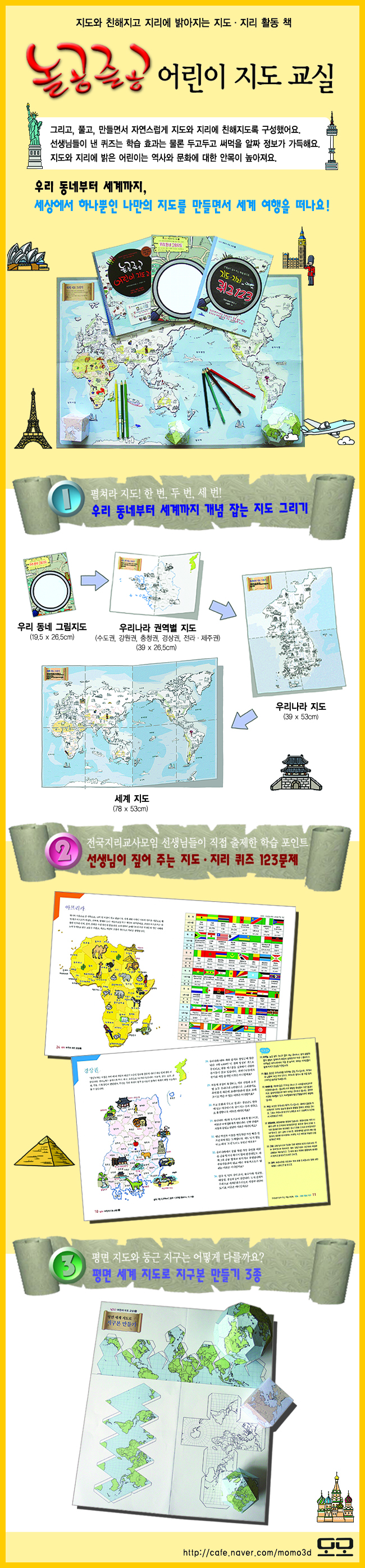 ¡º³î°øÁñ°ø ¾î¸°ÀÌ Áöµµ ±³½Ç¡»Àº ÃʵîÇб³ ¾î¸°À̵éÀÌ Áöµµ¿Í Áö¸®¿¡ ÀÚ¿¬½º·´°Ô Ä£¼÷ÇØÁö¸é¼ ÇнÀ È¿°úµµ ³¾ ¼ö ÀÖµµ·Ï ±âȹÇÑ Áöµµ¡¤Áö¸® Ȱµ¿ Ã¥ÀÔ´Ï´Ù. ÀÌ Ã¥Àº ¾î¸°À̰¡ ¼Õ¼ö ±×¸®¸é¼ Áöµµ¸¦ ¿Ï¼ºÇÒ ¼ö ÀÖµµ·Ï ÇÑ ¡¸¿ì¸® µ¿³×ºÎÅÍ ¼¼°è±îÁö °³³ä Àâ´Â Áöµµ ±×¸®±â¡¹, Àü±¹Áö¸®±³»ç¸ðÀÓ ¼±»ý´ÔµéÀÌ Á÷Á¢ ÃâÁ¦ÇÑ ¡¸¼±»ý´ÔÀÌ Â¤¾î ÁÖ´Â ÇнÀ Æ÷ÀÎÆ® Áöµµ¡¤Áö¸® ÄûÁî 123¹®Á¦¡¹, ½ÇÁ¦ Áö±¸ ¸ð½À°ú Á¾ÀÌ ÁöµµÀÇ Â÷À̸¦ ¾Ë ¼ö ÀÖ°Ô ÇØÁÖ´Â ¡¸Æò¸é ¼¼°è Áöµµ·Î Áö±¸º» ¸¸µé±â¡¹ µî ¼¼ °¡Áö·Î ±¸¼ºÇß½À´Ï´Ù. ÀÌ Ã¥À» ÁöÀº ¼±»ý´ÔµéÀº ¡°Áöµµ¿Í Áö¸®¸¦ Àß ¾Ë¼ö·Ï ¿ª»ç¿Í ¹®È µî¿¡ ´ëÇÑ ¾È¸ñÀÌ ³Ð¾îÁö°í ÇнÀµµ ¼ö¿ùÇØÁø´Ù¡±¸ç ÃʵîÇб³ ¾î¸°À̵éÀÌ »çȸ °ú¸ñ¿¡¼ Áöµµ¸¦ óÀ½ Á¢ÇÒ ¶§ºÎÅÍ Áöµµ¿Í Áö¸®¿¡ Ä£¼÷ÇØÁö´Â °Ô Áß¿äÇÏ´Ù°í °Á¶Çß½À´Ï´Ù.