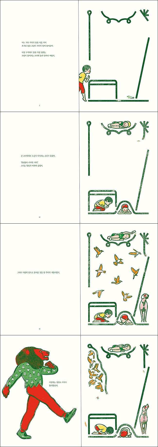 2015 º¼·Î³Ä ±¹Á¦ ¾î¸°ÀÌ µµ¼Àü ¶ó°¡Ä¡ »ó ÇÈ¼Ç ºÎ¹® ¼ö»óÀÛ. ½É»çÆò¿¡¼ ¡°¹æ¿¡ ¼û¾î ¹ú¹ú ¶°´Â Á¸À縦 µÎ·Á¿òÀ» ¸ð¸£´Â ¿ë°¨ÇÑ »çÀÚ·Î ±×¸®¸ç ÅëÄèÇÑ ¹ÝÀüÀÇ Àç¹Ì¸¦ ¼±»çÇÑ´Ù. ¿ì¾ÆÇϸ鼵µ °£°áÇÑ ±×¸²Àº °³¼ºÀÌ ³ÑÄ¡¸ç ½Å¼±ÇÏ´Ù¡±´Â Âù»ç¿Í ÇÔ²² ¡°¹Ýº¹µÇ´Â ¿îÀ²ÀÌ ¸Å·ÂÀûÀÎ ÃÖ°íÀÇ ½ºÅ丮¡±¶ó´Â È£ÆòÀ» ¹Þ¾Ò´Ù. »çÀÚÀÇ ¹æÀ̶ó´Â µ¶Æ¯ÇÑ °ø°£ ¼³Á¤ ¼Ó¿¡¼ ÆîÃÄÁö´Â À̾߱â´Â ¾ÆÀ̵éÀÌ ´À³¢´Â ½Çü°¡ ¾ø´Â ¸·¿¬ÇÑ µÎ·Á¿òÀ» ±Øº¹ÇÏ°Ô ÇØ ÁØ´Ù. ÆÇÈ ±â¹ýÀ» ÀÌ¿ëÇÑ Á¤°¥ÇÑ ±×¸²Ã¼´Â ¾ÆÀ̵éÀÇ ¿¹¼úÀûÀÎ ½É¹Ì¾ÈÀ» ´õ¿í ±í¾îÁö°Ô ¸¸µé¾î ÁÙ °ÍÀÌ´Ù.