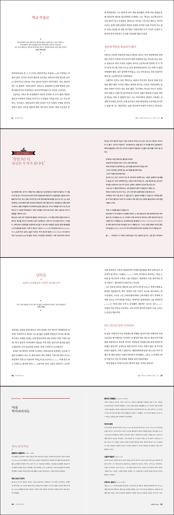 "¹«ÇÑÇÑ ¿¡³ÊÁö, È£±â½É ¸¹Àº õ¼º, ±×¸®°í ¶§·Î´Â °íÁý½º·± ±¸¼® °°Àº, À§´ëÇÑ ±â¾÷°¡¸¦ ¸¸µå´Â ÀÚÁúµéÀº ±³½Ç ¼Ó ¿ìµî»ýµéÀÌ º¸¿©ÁÖ´Â ÀÚÁú°ú ´Ù¸£´Ù. ±×·¯´Ï ¼¼°èÀÇ ¸¹Àº À§´ëÇÑ ±â¾÷°¡¿Í ºñÁî´Ï½º ¸®´õ µéÀÌ Á¤±Ô±³À°¿¡ ¾î·Á¿òÀ» °Þ¾ú´ø °Íµµ º°·Î ³î¶ó¿î ÀÏÀº ¾Æ´Ï´Ù.¡°