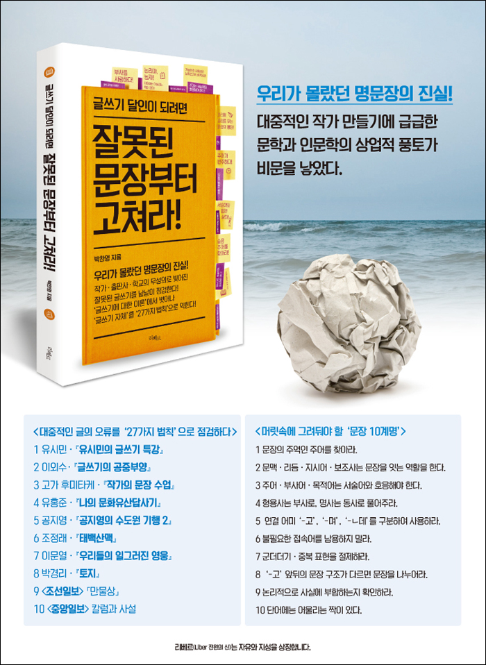 ÀÛ°¡¡¤ÃâÆÇ»ç¡¤Çб³¡¤¾ð·Ð»çÀÇ ¹«¼ºÀÇ·Î ºú¾îÁø À߸øµÈ ±Û¾²±â ¹®È¸¦ °íÄ¡´Â µ¥µµ ÈûÀ» ½ñ°í ÀÖ´Ù. ¡ºÀ߸øµÈ ¹®ÀåºÎÅÍ °íÃĶ󡻴 ¿À·§µ¿¾È ±âÀÚ¿Í ÆíÁýÀÚ·Î Áö³½ °æÇèÀÌ ³ì¾Æ ÀÖ´Â ±Û¾²±â Ã¥ÀÌ´Ù.