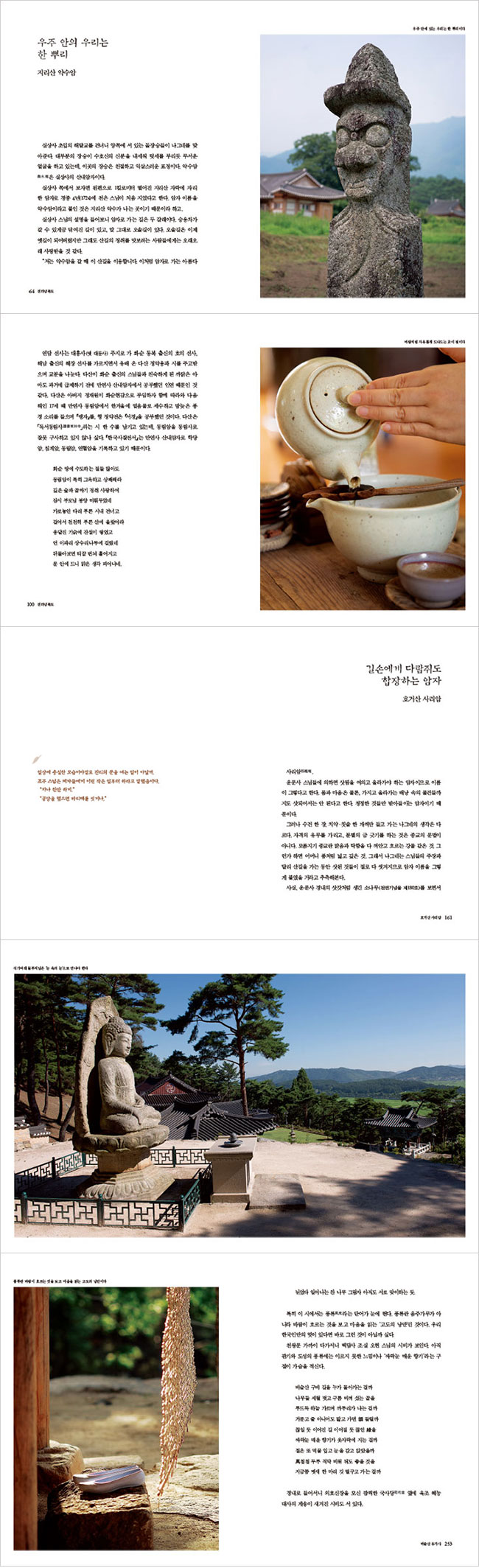 ¾ÏÀÚ´Â ±×Àú Çü»óÀÏ »Ó, ¾ÏÀÚÀÇ ¹®Àº ÇÏ´ÃÀ» ÇâÇØ ¿·Á ÀÖ´Ù. ±×·¯´Ï ¾ÏÀÚ¿¡¼ ¼öÇàÇÏ´Â ½º´ÔµéÀº Á¶±×¸¸ ¹æ ¾È¿¡ °¤Çô ÀÖ´Â °Ô ¾Æ´Ï¶ó ¿ìÁÖ¸¦ ÇâÇØ ´«±æÀ» ÁÖ°í ÀÖ´Â »ç¶÷µéÀÎ °ÍÀÌ´Ù. ¼Ò½»õ°¡ ¿ì´Â ¹ãÀÌ µÇÀÚ, ½º´ÔÀÌ »ïÃþ¼®Å¾(±¹º¸ Á¦10È£)°ú ¼®µî(º¸¹° Á¦40È£)ÀÌ ÀÖ´Â °÷À¸·Î ¾È³»ÇØÁØ´Ù. ´Þºû ¾Æ·¡ ¼´Ï ¹®µæ »ïÃþ¼®Å¾ÀÇ Áø¸éòØØüÀÌ º¸ÀδÙ. ºñ·Î¼Ò µ¹¿¡ ¾ç°¢µÈ Çϴûç¶÷°ú º¸»ìµéÀÌ ±×¸²ÀÚ¸¦ ¸¸µé¸ç »ì¾Æ ¿òÁ÷ÀδÙ. ±×·¯°í º¸´Ï žÀ̳ª ¼®µîÀº Çѳ¹ ³·ÀÇ Àå¾ö¹°ÀÌ ¾Æ´Ï¶ó ¹ãÀÇ ³îÀÌ ¹®È »ó¡¹°À̱⵵ ÇÏ¿´´Ù. žÀº ±× ±â¿øÀ» ¶°³ª ÈÄ´ë·Î ³»·Á¿À¸é¼ ¿¾»ç¶÷µéÀÇ Ä£±ÙÇÑ ¹þÀ̾úÀ½ÀÌ´Ù. ¼®µî¿¡ ºÒÀ» ȯÈ÷ ¹àÈ÷°í ¸¶À»ÀÇ Ã³³à ÃѰ¢µéÀÌ °¾ÆÁö¸¦ ¾Õ¼¼¿ì°í žµ¹À̸¦ ÇѸ¶´ç Èï°ã°Ô ÇÏ¿´´ø °ÍÀÌ´Ù. ±×·±µ¥ ¿À´Ã³¯ÀÇ Å¾Àº ¶¡³» ³ª´Â »î°ú µ¿¶³¾îÁ® ±¹º¸ ¸î È£, º¸¹° ¸î È£ µîÀÇ À̸§Ç¥¸¦ ´Þ°í À¯¹° ´ëÁ¢À» ¹Þ°í ÀÖ´Ù. »îÀÇ Á߽ɿ¡¼ Á¡Á¡ ºñ²¸³ª°í ÀÖÀ¸´Ï ¾Ö¼®ÇÑ ÀÏÀÌ´Ù. -76ÂÊ
