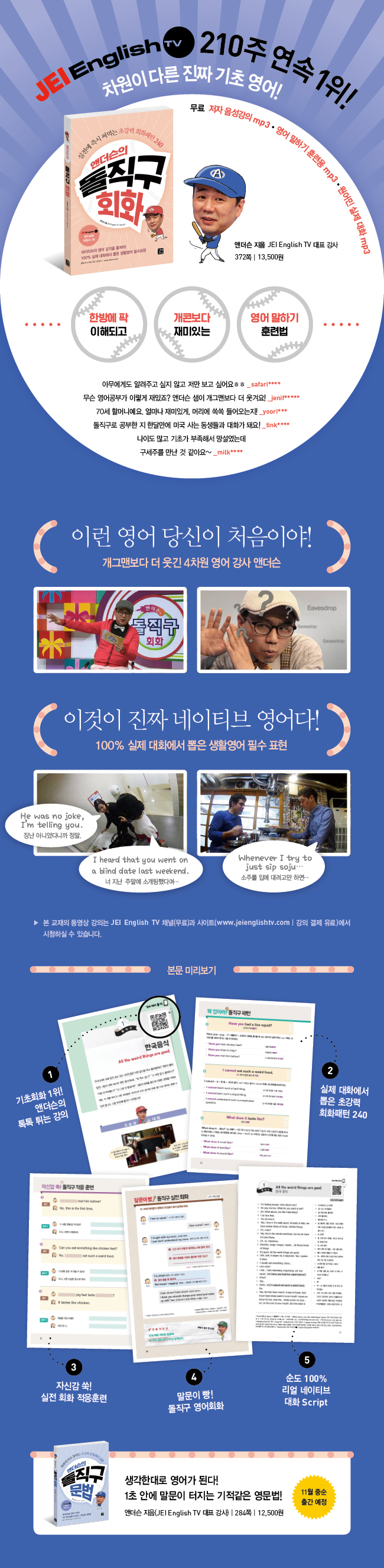 ¡°µ¹Á÷±¸ Ã¥ ¾ðÁ¦ ³ª¿Í¿ä?¡±, ¡°½ÃÁð3 »¡¸® Á¦ÀÛÇØÁÖ¼¼¿ä!¡± ¸¹À̵µ ½Ã´Þ·È½À´Ï´Ù¤Ð¤Ð ±×·¡µµ ¿µ¾îÀÇ Àç¹Ì, ¿µ¾î·Î ¸»ÇÏ´Â ±â»ÝÀ» ¾Ë°Ô µÇ¾ú´Ù´Â ½ÃûÀÚµéÀÇ °¨»ç ÀüÈ¿Í ¸ÞÀÏÀ» ¹ÞÀ¸¸é¼ µ¹Á÷±¸°¡ ¾ó¸¶³ª ¸¹Àº ºÐµé²² »ç¶û¹Þ°í ÀÖ´ÂÁö ¾Ë ¼ö ÀÖ¾úÁÒ. ¡®210ÁÖ ¿¬¼Ó 1À§, JEI English TV ¿ª´ë VOD ÆÇ¸Å 1À§¡¯¶ó´Â Àü¹«ÈĹ«ÇÑ ±â·ÏÀ» ¼¼¿î ÀÚ¶û½º·¯¿î ¹æ¼ÛÀ» Ã¥À¸·Î ´Ù½Ã±Ý ¼±º¸ÀÏ ¼ö ÀÖ¾î ÇູÇÕ´Ï´Ù. ÀÌ Ã¥À¸·Î ¸¹Àº ºÐµéÀÌ ¿µ¾î ½ºÆ®·¹½º¸¦ Çѹ濡 ³¯·Á¹ö¸®½Ã±æ ÀÀ¿øÇÕ´Ï´Ù!