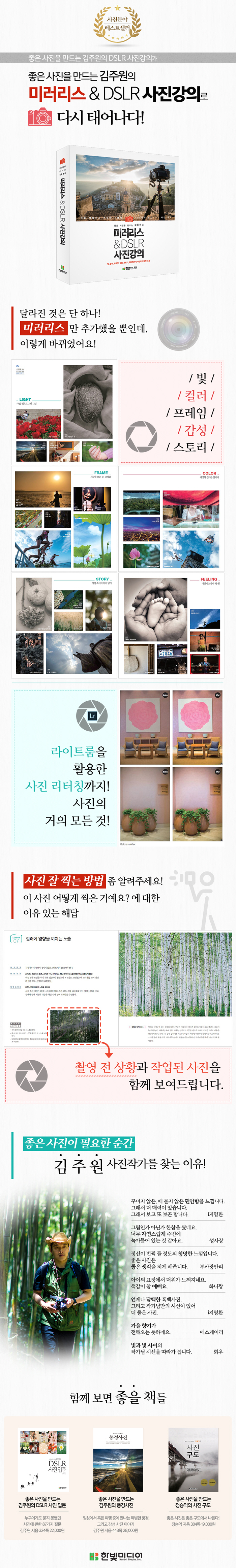 ÀÌ Ã¥¿¡´Â ÃÖ±Ù DSLRº¸´Ù °¡º±°í ÈÁú ÁÁÀº ¹Ì·¯¸®½ºÀÇ ³ô¾ÆÁø Àα⸦ ¹Ý¿µÇØ ¹Ì·¯¸®½º Ä«¸Þ¶ó·Î ÃÔ¿µÇÑ »çÁøÀÌ 90% ÀÌ»ó ¹Ý¿µµÇ¾ú°í, µðÁöÅÐ »çÁøÀ» ¼öÁ¤ÇÏ°í º¸¿ÏÇÏ´Â ¿ªÇÒÀ» ÇÏ´ø Æ÷Åä¼¥ ´ë½Å Á» ´õ ½±°í ºü¸£°Ô ÆíÁýÇÒ ¼ö ÀÖ´Â ¶óÀÌÆ®·ë º¸Á¤¿¡ °üÇÑ ³»¿ëÀ» ³Ö¾ú´Ù.