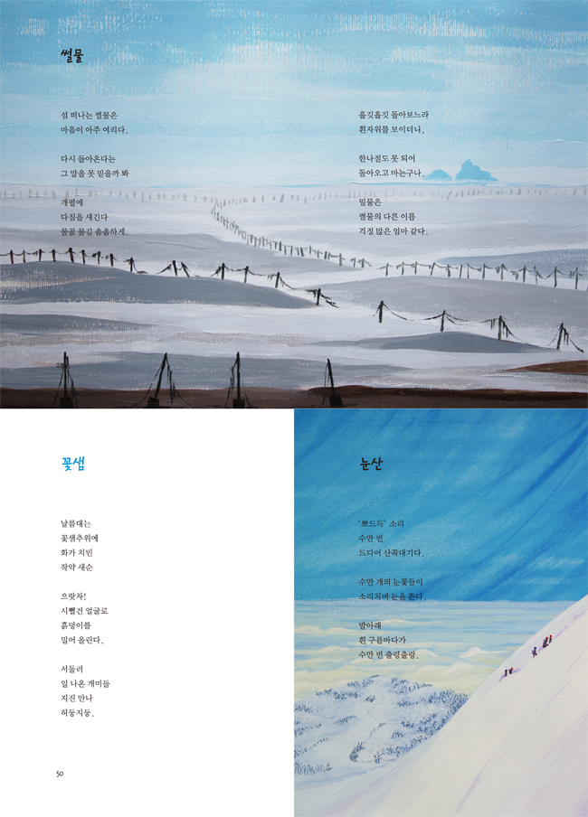 ¹Ù´ÙÀÇ ¿ªµ¿Àû À̹ÌÁö°¡ ½Ã âÀÛÀÇ ±Ù¿øÀÌ µÇ¾î ÀÚ¿¬ÀÇ ¼ÒÁßÇÔÀ» ÀνÄÇÏ´Â °ÍÀ¸·Î ³ª¾Æ°¡´Â µ¿½ÃÁýÀÔ´Ï´Ù. ¹Ù´Ù¶ó´Â ¾î¸Ó´ÏÀÇ Ç° ¾È¿¡¼ ¸ðµç »ý¸íÀº ź»ýÇÏ°í »îÀ» ¸¸³£ÇÏ´Ù°¡ ¸¶¹«¸®ÇÕ´Ï´Ù. ±×¸®ÇÏ¿© ½ÃÀÎÀº Àΰ£ÀÇ »ý¸íÀÌ ±ÍÇϵíÀÌ ¸ðµç »ý¸íÀº Á¸±ÍÇÏ´Ù´Â ±íÀº ¼ºÂû¿¡ À̸£°Ô µË´Ï´Ù. ÀÌ·¯ÇÑ ½ÃÀû Àǹ̴ µ¿½ÃÁ¶¶ó´Â Çü½ÄÀ» ÅëÇØ ´õ¿í ¼¼·ÃµÇ°í ¾ÐÃà¹Ì ÀÖ°Ô ¿Ï¼ºµÇ¾ú½À´Ï´Ù.