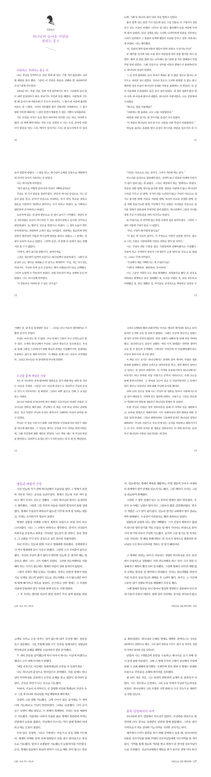 ÇÑ °¡Á¤ÀÇ Æò¹üÇÑ ¾Æ³»¿Í ¾ö¸¶¿ä, ±³È¸ÀÇ ½Å½ÇÇÑ ¼ºµµ¿´´ø ±×³à°¡ °¡Á¤ÀÇ °í³À» Åë°úÇϸç Çϳª´ÔÀ» ±íÀÌ ¸¸³ª°Ô µÈ´Ù. ±×¸®°í ÁÖ´ÔÀÌ ÁֽŠ¿¹¾ð°ú Ä¡À¯ÀÇ Àº»ç·Î º´µç ÀÚ, ¸¶À½ÀÌ »óÇÑ ÀÚ, °ú°ÅÀÇ »óó¿¡ ¸Å¿© ¾îµÒ¿¡ °¤Èù ÀÚµéÀ» Ä¡À¯ÇÏ´Â ±âµµ»ç¿ªÀÚÀÇ ±æÀ» °È°í ÀÖ´Ù.