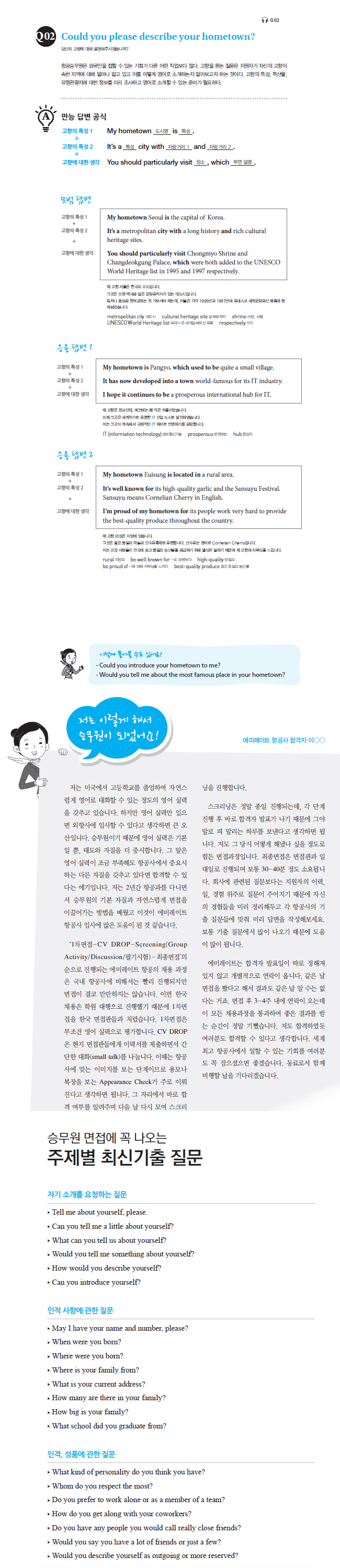 º»°ÝÀûÀÎ ÇнÀÀ» Çϱâ Àü, OrientationÀ» ÅëÇØ ¸éÁ¢¿¡¼ ²À ÁöÄÑ¾ß ÇÒ Çൿ°ú Àý´ë·Î ÇØ¼´Â ¾È µÉ Çൿ ¼öÄ¢ ¹× º¹Àå°ú ÀÚ¼¼¿¡ °üÇÑ Ã¼Å©Æ÷ÀÎÆ®±îÁö ¸éÁ¢ÀÇ ±âº»±â¸¦ ¾Ë·Áµå¸³´Ï´Ù. ¶Ç Part 1~6ÀÇ ÇнÀÀ» ¸¶Ä£ ÈÄ, Appendix¸¦ ÅëÇØ ÃֽűâÃâ Áú¹®, Ç×°ø¿ë¾î, ±â³»¹æ¼Û¹®, ÁÖ¿ä Ç×°ø»ç Á¤º¸, ÅäÀͽºÇÇÅ· Á¤º¸±îÁö Á¦°øÇص帳´Ï´Ù. ¶Ç ÇÑ °¡Áö »©³õÀ» ¼ö ¾ø´Â ¼ºñ½º·Î, ¶È¶ÈÇÑ ´äº¯¿¡ µè±â ÁÁÀº ¹ßÀ½°ú ¸®µë°¨ ÀÖ´Â ¾ï¾ç±îÁö ¿Ïº®À» ±âÇÒ ¼ö ÀÖµµ·Ï ÀÌ Ã¥¿¡ ¼ö·ÏµÈ ¸ðµç ´äº¯µéÀ» ¿µ¾î¸éÁ¢¿¡ ÀûÇÕÇÑ ¼Óµµ¿Í Ç¥ÁØ ¹ßÀ½ÀÇ ¿ø¾î¹Î À½¼ºÀ¸·Î ³ìÀ½ÇÏ¿© www.ybmbooks.com(µ¶ÀÚ°ø°£>µµ¼ÀÚ·á½Ç)À» ÅëÇØ ¹«·á MP3 ÆÄÀÏ·Î Á¦°øÇص帳´Ï´Ù.