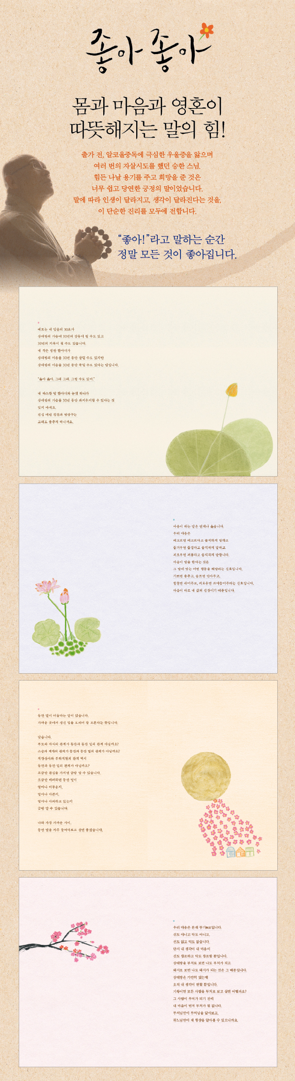 P.16 : ²É°ú ¹Ù¶÷À» ÅëÇØ, ±¸¸§°ú ´«À» ÅëÇØ, »õ½Ï°ú »õ¼Ò¸®, ºø¼Ò¸®, ´«ºÎ½Å º½ºµ°ú ¾ÆÄ§¸¶´Ù µé¸®´Â ¾î¸Ó´ÏÀÇ ¹ä Áþ´Â ¼Ò¸®¸¦ ÅëÇØ, »õº®¸¶´Ù ÁýÁýÀÌ µ¹¾Æ´Ù´Ï´Â ½Å¹®¹è´ÞºÎÀÇ ÈûÂù ¹ßÀÚ±¹ ¼Ò¸®¿Í ¹ÌÈ¿øÀÇ °íÀûÇÑ ºñÁú ¼Ò¸®¸¦ ÅëÇØ¡¦ ¼ö¸¹Àº ±× ¸»¾¸À» ÅëÇØ¼ ¿ìÁÖ´Â ¸ÅÀÏ ¿ì¸®¿¡°Ô ÁÁÀº ¸»À» °É¾î¿À°í ÀÖ´Â °ÍÀÔ´Ï´Ù. ¿ì¸®´Â ´ÜÁö ±×°ÍÀ» µè°í ¹Þ¾ÆµéÀÌ°í ´À³¢°í ±àÁ¤Çϱ⸸ ÇÏ¸é µË´Ï´Ù. ¡°ÁÁ¾Æ ÁÁ¾Æ!¡±¶ó°í ¸ÂÀ屸ġ±â¸¸ ÇÏ¸é µË´Ï´Ù.