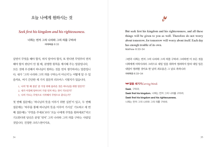 ¼º·ÉÀÇ ¿ª»çÇϽɿ¡ ÈûÀÔ¾î ¿ì¸®°¡ º¹À½ÀÇ ÇÙ½ÉÀ» °£ÆÄÇÒ ¼ö ÀÖÀ½¿¡µµ ºÒ±¸ÇÏ°í ¿øº» ¼º°æÀÌ °¡Áø ¼¼¹ÐÇÔ°ú »ç°ÇÀÇ »ö°¨, Áú°¨ÀÌ ±×´ë·Î ´À²¸ÁöÁö ¾ÊÀ» ¶§°¡ ¸¹½À´Ï´Ù. ´ëºÎºÐÀÇ Å©¸®½ºÃµÀº ½ÅÇÐ Àü¹®°¡µéÀÌ ¾Æ´Ï°í È÷ºê¸®¾î¿Í Çï¶ó¾î·Î ¼º°æÀ» ÀÐÀ» ¼ö ¾ø½À´Ï´Ù. ±×·¸°Ô ¶§¹®¿¡ ¼º°æ ¸»¾¸ÀÇ ¿øº»Àû Åæ¿¡ °¡Àå °¡±îÀÌ Á¢±ÙÇÒ ¼ö ÀÖ´Â ¹æ¹ýÀº ¿©·¯ °¡Áö ¹öÀüÀÇ ¹ø¿ªº»À» Àд °ÍÀÔ´Ï´Ù. ¿µ¾î ¼º°æÀº ½¬¿î ¿µ¾î¸¦ »ç¿ëÇÑ ¹ø¿ªº»ÀÇ °æ¿ì ´ëºÎºÐ ¾î·Æ°Ô ¹ø¿ªµÈ ¿ì¸®¸» ¼º°æº¸´Ù ¿ÀÈ÷·Á ÀÌÇØÇϱ⠽±½À´Ï´Ù. ±×·± ¶æÀ» ´ã¾Æ¡º¹®´Ü¿ÀÇ ¸ÅÀÏ Àд ¿µ¾î ¼º°æ¡»À» Ãâ°£ÇÏ°Ô µÇ¾ú½À´Ï´Ù. ¿µ¾îÀÇ ¹®¿ÜÇÑÀÌ ¾Æ´Ï°í ¿µ¾î ÇнÀ¿¡ °ü½ÉÀÌ ÀÖ´Â µ¶ÀÚ¶ó¸é, ¿µ¾î °øºÎ¸¦ ÇÏ¸é¼ ¼º°æ ¿ø¹®ÀÇ º¸´Ù dz¼ºÇÔÀ» ´©¸± ¼ö ÀÖ´Â ÁÁÀº ±âȸ°¡ µÇ¸®¶ó°í »ý°¢ÇÕ´Ï´Ù. ¾ËÂù ¿µ¾î °øºÎ¿Í ´õºÒ¾î dz¼ºÇÑ ÀºÇý°¡ ÀÓÇÏ½Ã±æ ±âµµµå¸³´Ï´Ù.