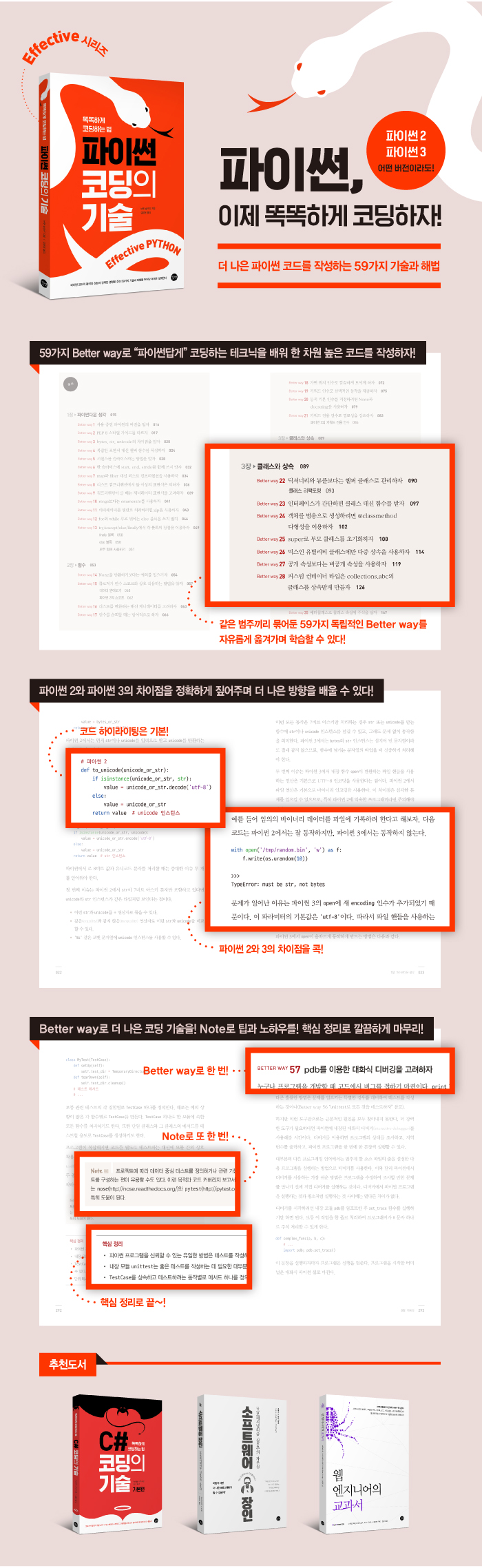 ÀÌ Ã¥Àº ÇÁ·Î±×·¡¹Ö ºÐ¾ß¿¡¼ Àü¹æÀ§Àû ¿ªÇÒÀ» ÇÏ´Â ÆÄÀ̽ãÀÇ ·¹º§À» ÇÑ ´Ü°è ²ø¾î¿Ã¸± ¼ö ÀÖµµ·Ï 59°³ÀÇ ÆÁ°ú Å×Å©´ÐÀ» ¼³¸íÇϰí ÀÖ´Ù. ÀúÀÚÀÇ ´Ù³â°£¿¡ °ÉÄ£ ÆÄÀ̽ãÀÇ °³¹ß °æÇèÀÌ Better way ÇϳªÇϳª¿¡ ³ì¾Æ ÀÖ´Ù.