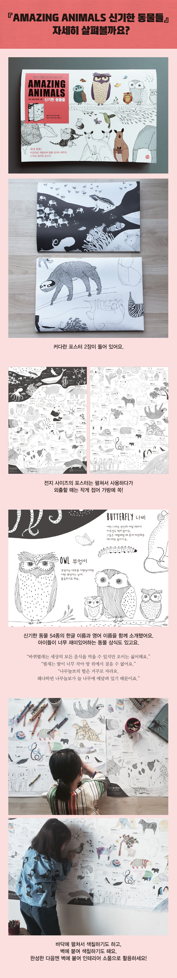 ½º¿þµ§ÀÇ À¯¸í ÀÏ·¯½ºÆ® ÀÛ°¡ÀÎ ¸¶¾ß ¼¼ÇÁ½ºÆ®·ÝÀÇ °¨¼ºÀûÀÎ µ¿¹° ±×¸²À» ÀüÁö »çÀÌÁîÀÇ Á¾ÀÌ¿¡ ´ã¾Æ³½ ¡®»öÄ¥³îÀÌ Æ÷½ºÅÍ¡¯ÀÌ´Ù. ¡®AMAZING ANIMALS¡¯¶õ Á¦¸ñó·³ ½Å±âÇÏ°í ³î¶ó¿î 54Á¾ÀÇ µ¿¹°°ú ±×µéÀÇ Àç¹ÌÀÖ´Â À̾߱Ⱑ ÇÔ²² ÆîÃÄÁø´Ù. ¹Ù´Ú¿¡ ÆîÃÄ ³õ°Å³ª º®¿¡ ºÙ¿©¼ »ö¿¬ÇÊ, ¸¶Ä«, Å©·¹ÆÄ½º µîÀ¸·Î »öÄ¥ÇÏ´Ù°¡ ´Ù½Ã ÀÛ°Ô Á¢¾î º¸°üÇÒ ¼ö ÀÖ´Ù. ÇѹøÀ¸·Î ³¡³»´Â »öÄ¥³îÀ̰¡ ¾Æ´Ï¶ó, ¿À·£ ½Ã°£ Çϳª¾¿ Çϳª¾¿ µ¿¹°À» »öÄ¥ÇÏ¸ç ¿Ï¼ºÇسª°¡´Â Æ÷½ºÅÍÀÌ´Ù. ¿Ï¼º ÈÄ¿¡´Â º®¿¡ ºÙ¿© ÀÎÅ׸®¾î ¼ÒǰÀ¸·Î Ȱ¿ëÇØº¸ÀÚ.
