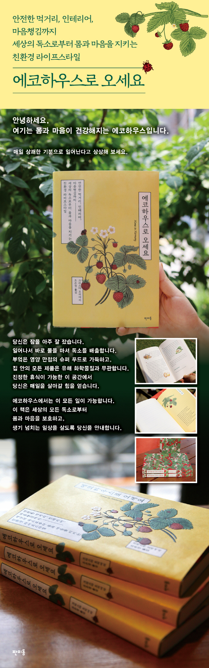 ģȯ°æ »ýȰ Àü¹®°¡ÀÌÀÚ ÀÎÅ׸®¾î µðÀÚÀ̳Ê. ¼¼°èÀûÀÎ ÀÎÅ׸®¾î ±â¾÷ ¡®Home in Harmony Designs¡¯ÀÇ CEO´Ù. Å©¸®½ºÅ¸ ¿À¸®¾î¸®´Â »ç¾÷À» ¼º°øÀûÀ¸·Î ¿î¿µÇÏ´Â µ¿½Ã¿¡ ³× ¾ÆÀÌÀÇ ¾ö¸¶·Î¼ Áñ°Ì°Ô °¡Á¤À» ²Ù·Á °¡°í ÀÖ´Ù. ù ¾ÆÀ̰¡ ¿ìÀ¯ ´Ü¹éÁú °ú¹Î¼º ¾Ë·¹¸£±â·Î »ç°æÀ» Çì¸Ç ÈÄ, À½½ÄÀ» ºñ·ÔÇØ °¡±¸¿Í »ýȰ¿ëǰ¿¡ »ç¿ëµÈ À¯ÇØ ÈÇÐ ¹°ÁúÀ» ºÐ¼®Çϸç, ģȯ°æ »ýȰ Àü¹®°¡·Î °Åµì³µ´Ù. ¶ÇÇÑ ÀÎÅ׸®¾î µðÀÚÀ̳ʷμ ÁýÀ» Á¤µ·µÇ°í ÃæÀüÇÒ ¼ö ÀÖ´Â °ø°£À¸·Î °¡²Ù¸ç, ¹Ù»Û »ýȰ ¼Ó¿¡¼µµ ¸ö°ú ¸¶À½ÀÇ Æòȸ¦ Ãß±¸ÇØ ¿Ô´Ù. ±×³à´Â ÀÌ·¯ÇÑ ³ëÇϿ츦 ¡®¿¡ÄÚÇϿ콺ÀÇ »ýȰ ¹æ½Ä¡¯À¸·Î Á¤¸®ÇØ, ÀÌ Ã¥¿¡ ´ã¾Æ³Â´Ù. ¸ö¿¡ ÀÌ·Î¿î ¹æ½ÄÀ¸·Î Àå¹Ù±¸´Ï¿Í ³ÃÀå°í¸¦ ±¸¼ºÇÒ ¼ö ÀÖ´Ù¸é, Áý ¾È ÀÎÅ׸®¾î´Â ¹°·Ð »î±îÁöµµ Àڽſ¡°Ô ÀÌ·Î¿î ¹æ½ÄÀ¸·Î µðÀÚÀÎÇÒ ¼ö ÀÖ´Ù´Â ¸Þ½ÃÁö¸¦ ÀüÇÑ´Ù. ¸ö°ú ¸¶À½À» °Ç°ÇÏ°Ô °ü¸®ÇÏ°í ¿µ°¨ÀÌ ³ÑÄ¡´Â Ȱ±âÂù °¡Á¤À» ¸¸µé¾î ÃÖÀûÀÇ »îÀ» »ì°í ½ÍÀº »ç¶÷µé¿¡°Ô ÀÌ Ã¥Àº ±¸Ã¼ÀûÀÎ ÇØ°áÃ¥À» Á¦°øÇÑ´Ù.
