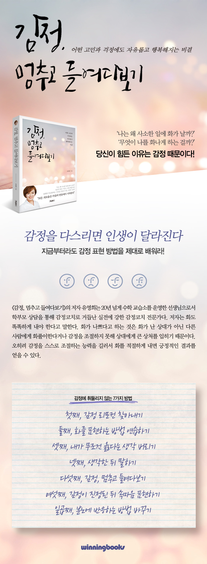 °ú°ÅÀÇ ³» ¸ð½À°ú ÇöÀçÀÇ ³» ¸ð½ÀÀ» ¾Ë°í °¨Á¤À» °üÂûÇÏ°Ô µÇ¸é ¡®ºÐ³ë¡¯¸¦ ´À³¢°í ÀÖÀ½¿¡µµ ¸ØÃß°í, µé¿©´Ùº¼ ¼ö ÀÖ°Ô µÈ´Ù. ¸ðµç °¨Á¤Àº ³»°¡ ¼±ÅÃÇÏ´Â °ÍÀÌ´Ù. °¨Á¤ÀÌ ÁÖüÇÒ ¼ö ¾øÀÌ ¼Ú±¸Ä¥ ¶§´Â Àá½Ã ¸ØÃß°í °üÂûÇϸé ÀÌÀ¯¸¦ ãÀ» ¼ö ÀÖ´Ù. _(243ÂÊ)