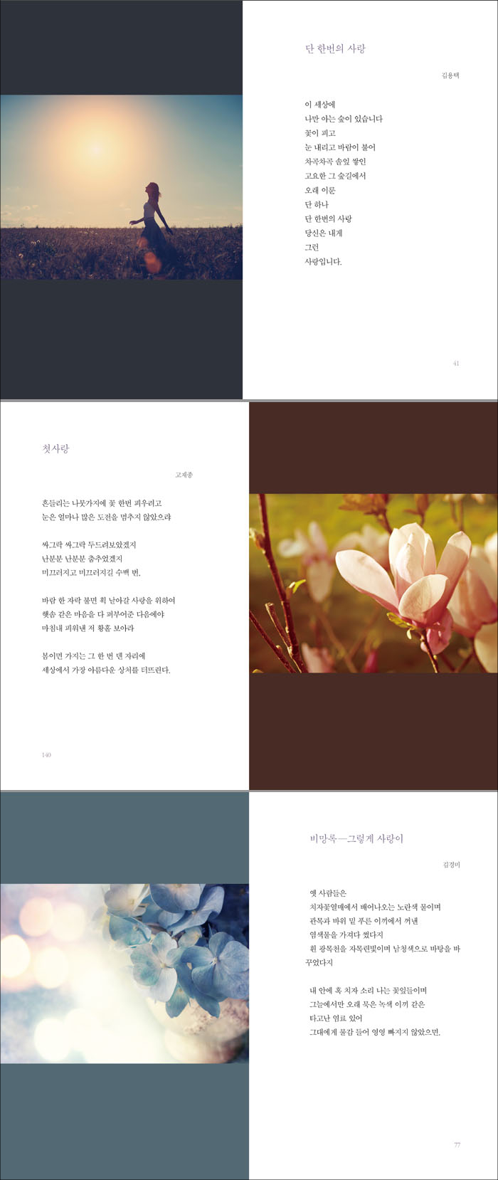 ½ÃÁý ¡¶Á¾ÀÌ¡·¡¶ºÀÇå¹®ÀÚ¡·¡¶¾Æ¹öÁöÀÇ ºû¡·¡¶¾î¸Ó´Ï ±× »ß¶Ô»ß¶ÔÇÑ ±Û¾¾¡·¡¶¿À·¡ ¸»ÇÏ´Â »çÀÌ¡·¡¶»ì È帣´Ù¡·, ÀåÆí¼Ò¼³ ¡¶¹° À§¸¦ °È´Â ¿©ÀÚ¡·, ¼öÇÊÁý ¡¶¹Ì¾ÈÇØ¡¦ °í¸¶¿ö¡¦ »ç¶ûÇØ¡·¡¶¿©ÀÚ¸¦ À§ÇÑ Àλý 10°¡·¡¶¹éÄ¡¾ÖÀΡ· ¡¶±×´ë¿¡°Ô ÁÙ ¸»Àº ¿¬½ÀÀÌ ÇÊ¿äÇÏ´Ù¡· ¡¶¿©ÀÚ´Â ³ªÀÌ¿Í ÇÔ²² ¾Æ¸§´Ù¿öÁø´Ù¡· ¡¶°í¹é¡·¡¶³Ê´Â ÀÌ ¼¼ °¡Áö¸¦ ¸í½ÉÇ϶󡷡¶³ª´Â ¸¶Èç¿¡ »ýÀÇ °ÉÀ½¸¶¸¦ ¹è¿ü´Ù¡· µîÀÌ ÀÖ´Ù.