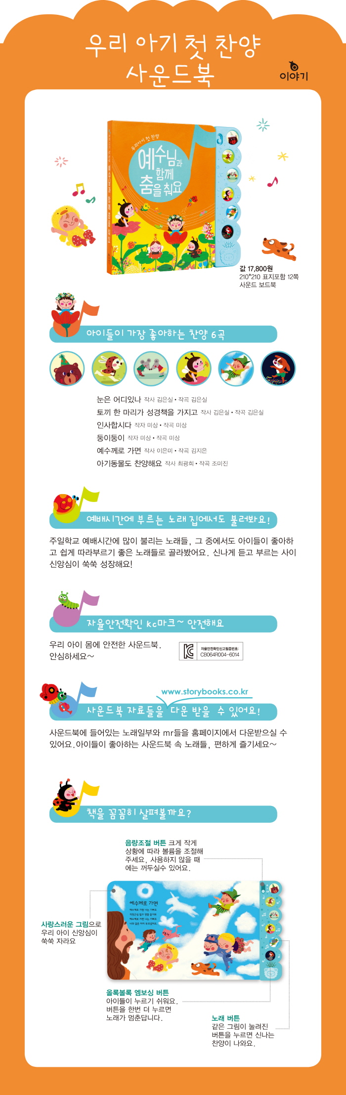 ¿ì¸® ¾ÆÀ̵éÀÇ ¸¶À½ ¼Ó¿¡ ¹ÏÀ½ÀÌ ¾¦¾¦ Àڶ󳪴 ÃֽŠÂù¾ç 6°îÀÌ µé¾î ÀÖ¾î¿ä. [´«Àº ¾îµðÀÖ³ª] [ÀλçÇսôÙ] [¾Æ±âµ¿¹°µéµµ Âù¾çÇØ¿ä] µî ÀǼº¾î¿Í ÀÇž °¡µæÇÑ Àç¹ÌÀÖ´Â ³ë·§¸»Àº ¿ì¸® ¾ÆÀ̵éÀÇ ³ú¿¡ Áñ°Å¿î ÀÚ±ØÀÌ µÇ¾îÁØ´ä´Ï´Ù. »ç¿îµåºÏÀ» ÆîÃijõ°í ³ë·¡¸¦ µû¶ó ºÎ¸£´Ù º¸¸é ±í°íµµ ³ÐÀº Çϳª´ÔÀÇ »ç¶ûÀÌ ´À²¸Áú °Å¿¹¿ä. ºÎµå·´°ÔµÕ±Û¸° Ã¥ ¸ð¼¸®¿Í ´©¸£±â ½¬¿î »ç¿îµå ¹öưÀ¸·Î ¾ÈÀüÇÏ°Ô »ç¿ëÇÒ ¼ö ÀÖ¾î¿ä.