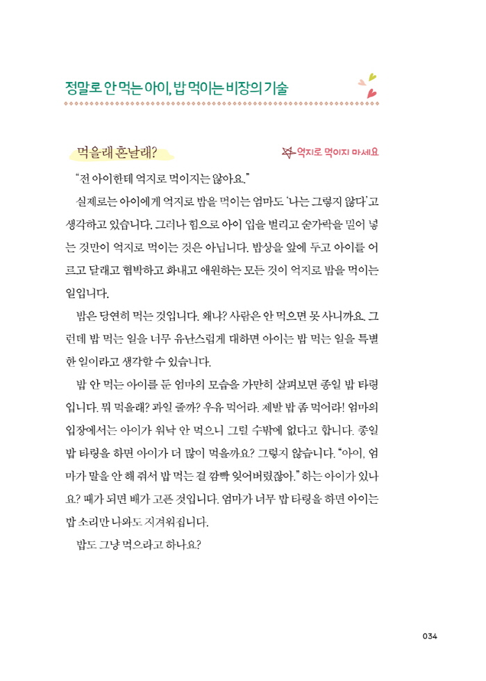 ¡±×·´°Ô ¹ä ¾È ¸Ô´Â Å« ¾ÆÀÌ¿Í ÀÌÁ¦ Dz°íÃß±îÁö µµÀüÇÏ¸ç ¹«¾ùÀ̵ç Àß ¸Ô´Â ÀÛÀº ¾ÆÀ̸¦ µÐ ÀúÀÚÀÇ °æÇèÀ» ¹ÙÅÁÀ¸·Î À߸øµÈ ½Ä»ç ½À°ü ¹Ù·Î Àâ±â, Æí½Ä °íÄ¡´Â ¹æ¹ý µî ¾î¶»°Ô ÇÏ¸é ¾ÆÀÌ¿¡°Ô Á¦´ë·Î µÈ ½Ä½À°üÀ» ¸¸µé¾î ÁÙ °ÍÀΰ¡ ÇÏ´Â °í¹ÎÀÌ »ý»ýÈ÷ ³ì¾Æ ÀÖ´Ù. -MDÃßõ