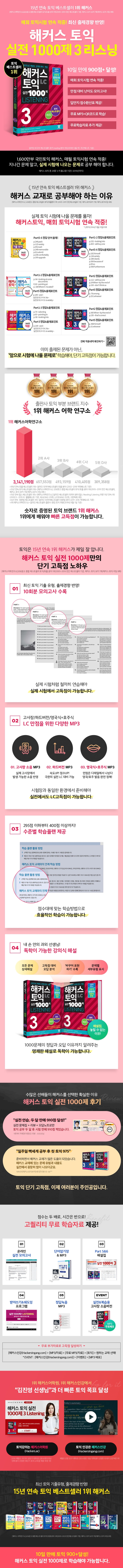 ¡ºÇØÄ¿½º ÅäÀÍ ½ÇÀü 1000Á¦. 3 Listening(ÇØ¼³Áý)¡»Àº ÅäÀÍ ÃֽŠÃâÁ¦°æÇâÀ» ¿Ïº® ¹Ý¿µÇÑ ½ÇÀü ¹®Á¦ ÇØ¼³ÁýÀÌ´Ù. ÃֽŠÅäÀÍ ÃâÁ¦À¯Çü ¹× ³À̵µ 100% ¹Ý¿µÇÏ¿´´Ù. Part 1,2¿¡¼ ½ÅÅäÀÍ °íµæÁ¡À» À§ÇØ Á¤º¹ÇØ¾ß ÇÒ "¿À´ä Æ÷ÀÎÆ®" »ó¼¼ ¼³¸íÇÏ°í ½ÅÀ¯ÇüÀÌ Ãß°¡µÈ Part 3,4¸¦ ½±°Ô ÇØ°áÇÏ´Â '¹®Á¦º° Á¤´ä ´Ü¼, ¹Ù²Ù¾î Ç¥ÇöÇϱâ, »ó¼¼ÇÑ ÇØ¼³' ¼ö·ÏÇÏ¿´´Ù.