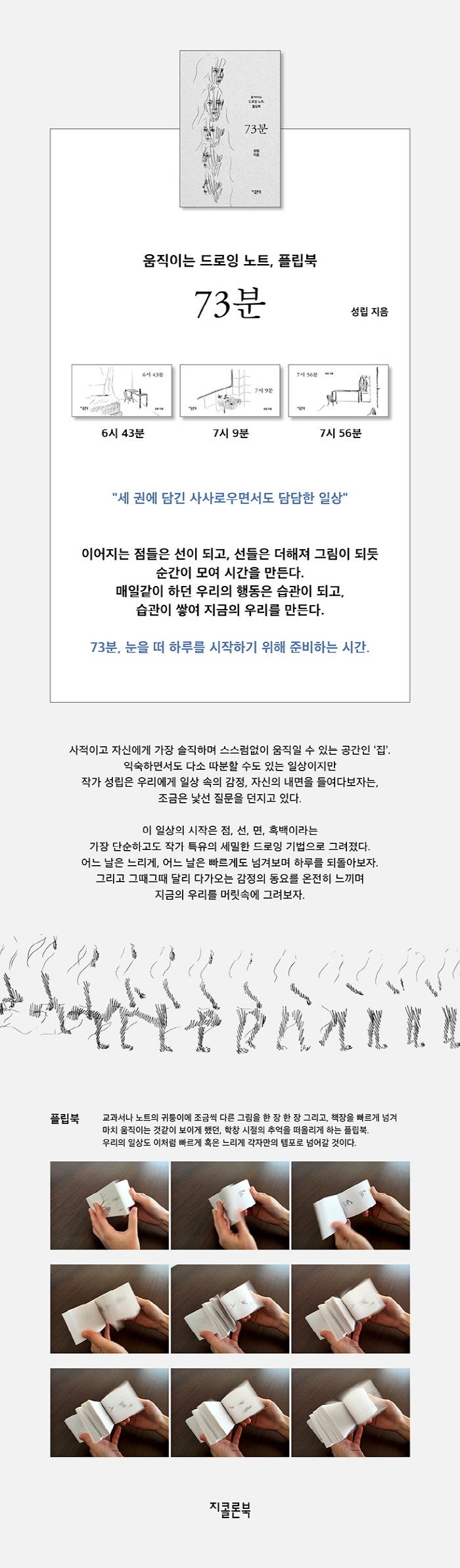 ÁöÄݷкÏÀÇ ¡º73ºÐ¡»Àº ¡®¾ÆÄ§¿¡ ÀϾ ¹ÛÀ¸·Î ³ª¼±â±îÁöÀÇ ¸ð½À¡¯À» ÁÖÁ¦·Î ÇÑ Çø³ºÏÀÌ´Ù. Çø³ºÏÀ̶õ ÆäÀÌÁö¸¦ ºü¸£°Ô ³Ñ°Ü¼ ¿òÁ÷ÀÌ´Â °Íó·³ º¸ÀÌ°Ô Çϴ åÀ¸·Î, ¡º73ºÐ¡»¿¡¼´Â Á¡ÀÌ ¸ð¿© ¼±ÀÌ µÇ°í ¼±ÀÌ ¸ð¿© ±×¸²ÀÌ µÇ´Â °úÁ¤ÀÌ ¼¼¹ÐÇÏ°Ô ±×·ÁÁ® ÀÖ´Ù. ÀÌ Ã¥À» ÅëÇØ °¡Àå º¸ÅëÀÇ ÀÏ»óÀ̸鼵µ °¡Àå º¸ÅëÀÌÁö ¾ÊÀº ÀÏ»óÀ» Á¶¿ëÈ÷ °¨»óÇØº¸ÀÚ.3