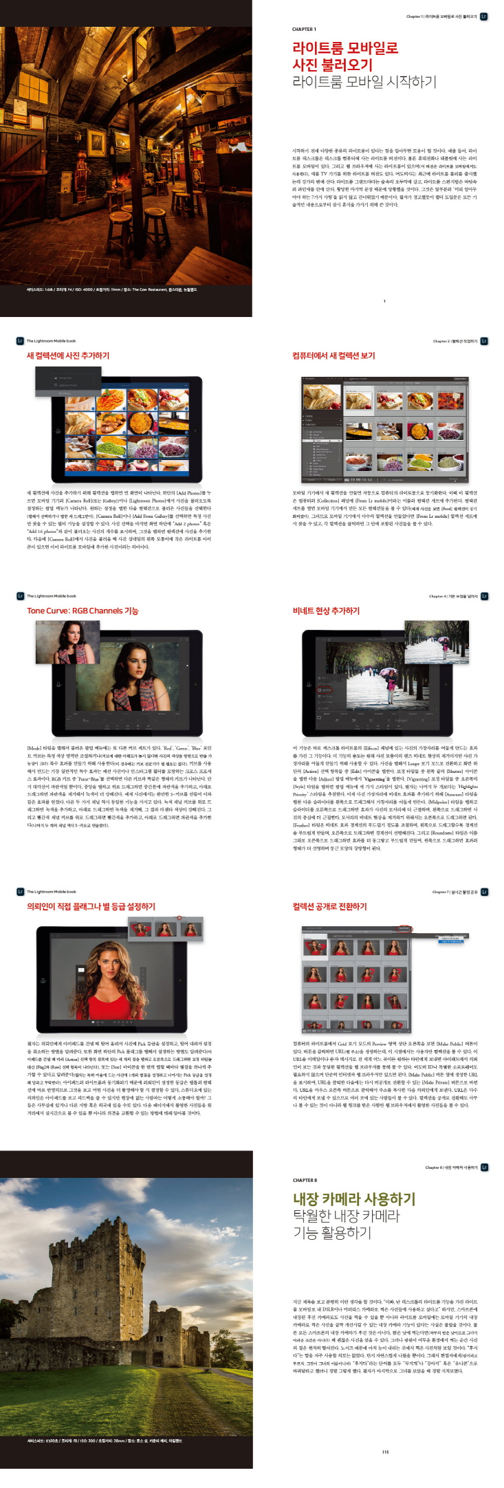 ¶óÀÌÆ®·ë °ü·Ã ¼Àû º£½ºÆ®¼¿·¯ÀÇ ÀúÀÚ°¡ ´Ü°èº°·Î ¼³¸íÇØÁÖ°í ¶óÀÌÆ®·ë ¸ð¹ÙÀÏ »ç¿ë¹ý°ú µ¥½ºÅ©Åé ¶óÀÌÆ®·ëÀÇ Å¹¿ùÇÑ ±â´ÉÀ» ¸ð¹ÙÀÏ ±â±â¿¡¼µµ »ç¿ëÇÒ ¼ö ÀÖ´Â ºñ¹ýÀ» ¾Ë·ÁÁØ´Ù. ½ºÄàÀÇ Ã¥Àº ±â¼úÀûÀÎ Àü¹®¾îµéÀ» »©°í ¸¶Ä¡ Ä£±¸¿¡°Ô ÇϵíÀÌ ¶óÀÌÆ®·ë ¸ð¹ÙÀÏÀ» ¼³¸íÇØÁØ´Ù. ºü¸£°í ½¬¿î »ç¿ë¹ý°ú ¶óÀÌÆ®·ë ¸ð¹ÙÀÏÀÇ ³î¶ó¿î ±â´ÉµéÀ» ÃÖ´ëÇÑ È°¿ëÇÒ ¼ö ÀÖµµ·Ï µµ¿ÍÁÖ¸ç µ¥½ºÅ©ÅéÀÇ ¶óÀÌÆ®·ë¿¡´Â ¾ø´Â ±â´Éµé±îÁöµµ ¾Ë·ÁÁØ´Ù. ½ºÄàÀº ¶óÀÌÆ®·ë ¸ð¹ÙÀÏÀÌ Ã³À½ Ãâ½ÃµÇ¾úÀ» ¶§ºÎÅÍ »ç¿ëÇÏ°í ¸Å³â Æ÷Åä¼¥ ¼¼°è ÄÁÆÛ·±½º¿¡¼ ¶óÀÌÆ®·ë ¸ð¹ÙÀÏ °Àǵµ ÇÑ´Ù. »ç¿ëÀÚµéÀÌ ¾î¶² °úÁ¤¿¡¼ ¾î·Á¿ò°ú È¥¶õÀ» ´À³¢´ÂÁö ÆÄ¾ÇÇÏ°í ±Øº¹ÇÏ´Â ¹æ¹ý±îÁö Á¤È®ÇÏ°Ô ¾Ë·ÁÁÖ¾î ¸ð¹ÙÀÏ ±â±â¿¡¼ »çÁøÀ» ÀÚÀ¯·Ó°Ô ÆíÁýÇÒ ¼ö ÀÖµµ·Ï µ½´Â´Ù. ÀÌ Ã¥À» ÅëÇØ »çÁøÀÇ Á¤¸®ºÎÅÍ ÆíÁý ±×¸®°í °øÀ¯±îÁö ¸ðµç °úÁ¤À» ¹è¿ï ¼ö ÀÖÀ¸¸ç, ÀÌ Ã¥À» µ¤À¸¸é ¹Ù·Î ÇÁ·Î»çÁø°¡Ã³·³ ¸ð¹ÙÀÏ ±â±â·Î »çÁøÀ» ÆíÁýÇÒ ¼ö ÀÖ´Ù.