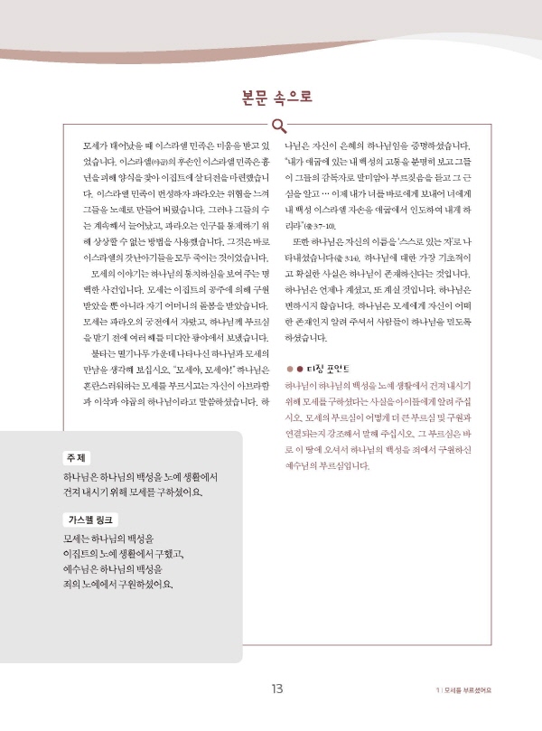 ¿ì¸®¸¦ ÇâÇÑ Çϳª´ÔÀÇ ¸ØÃßÁö ¾Ê´Â »ç¶û, ¾ÆµéÀ» ³»¾î ÁֽŠ¾Æ¹öÁö Çϳª´ÔÀÇ ³î¶ó¿î ±¸¿ø °èȹ¿¡ ´«¶ß°Ô ÇÏ´Â ±³ÀçÀÔ´Ï´Ù. ¼º°æÀ» ²ç¶Õ´Â º¯ÇÔ¾ø´Â ¸Þ½ÃÁö, ¿¹¼ö ±×¸®½ºµµ¸¦ ¸¸³¯ ¼ö ÀÖ´Â ±³ÀçÀÔ´Ï´Ù. À¯ÀÍÇÑ È°µ¿°ú Èï¹Ì·Î¿î ¹Ýº¹ ÇнÀÀ» ÅëÇØ ±âµ¶±³ ÇÙ½É ÁÖÁ¦¸¦ Á¢Çϰí, ¸»¾¸À» °¡±îÀÌÇϸç, °¡Á·°ú ¹¬»óÀ» ³ª´©µµ·Ï À̲ô´Â ¹æ½Ä¿¡ ±â´ë°¡ Å®´Ï´Ù. ´Ù¾çÇÑ ¼ÒÀçÀÇ ¿µ»ó°ú ±×¸² ÀÚ·á´Â ½Ãû°¢ ÀÚ·á°¡ ºÎÁ·ÇÑ ±³À° ÇöÀå¿¡ Å« Ȱ·ÂÀ» ºÒ¾î³Ö¾î ÁÙ °ÍÀÔ´Ï´Ù. ±³Àç ³»¿ë¿¡ ¸Â°Ô âÀÛµÈ Âù¾çÀº °îÁ¶°¡ ÀÖ´Â »ê ±âµµ¸¦ üÇèÇÏ°Ô µµ¿ÍÁÙ °ÍÀÔ´Ï´Ù. ¹«¹Ì°ÇÁ¶ÇÑ ½À°üÀû ¿¹¹è, ¾ÆÀ̵é°ú ¼ÒÅëÇÏÁö ¸øÇØ ¾ÈŸ±î¿öÇß´ø ºÎ¸ð¿Í ±³»ç, ´ÙÀ½ ¼¼´ë¸¦ °ÆÁ¤ÇÏ´Â ±³È¸ ÁöµµÀڵ鿡°Ô ÀÌ ±³À縦 ÃßõÇÕ´Ï´Ù.
